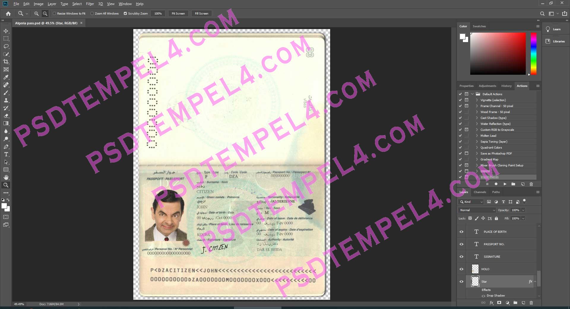 Download Algeria passport Photoshop PSD File Template Fully Editable