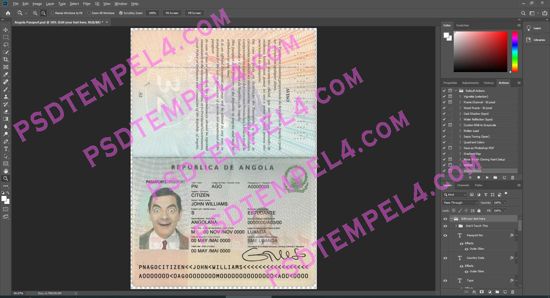 Download Angola passport Photoshop PSD File Template Fully Editable