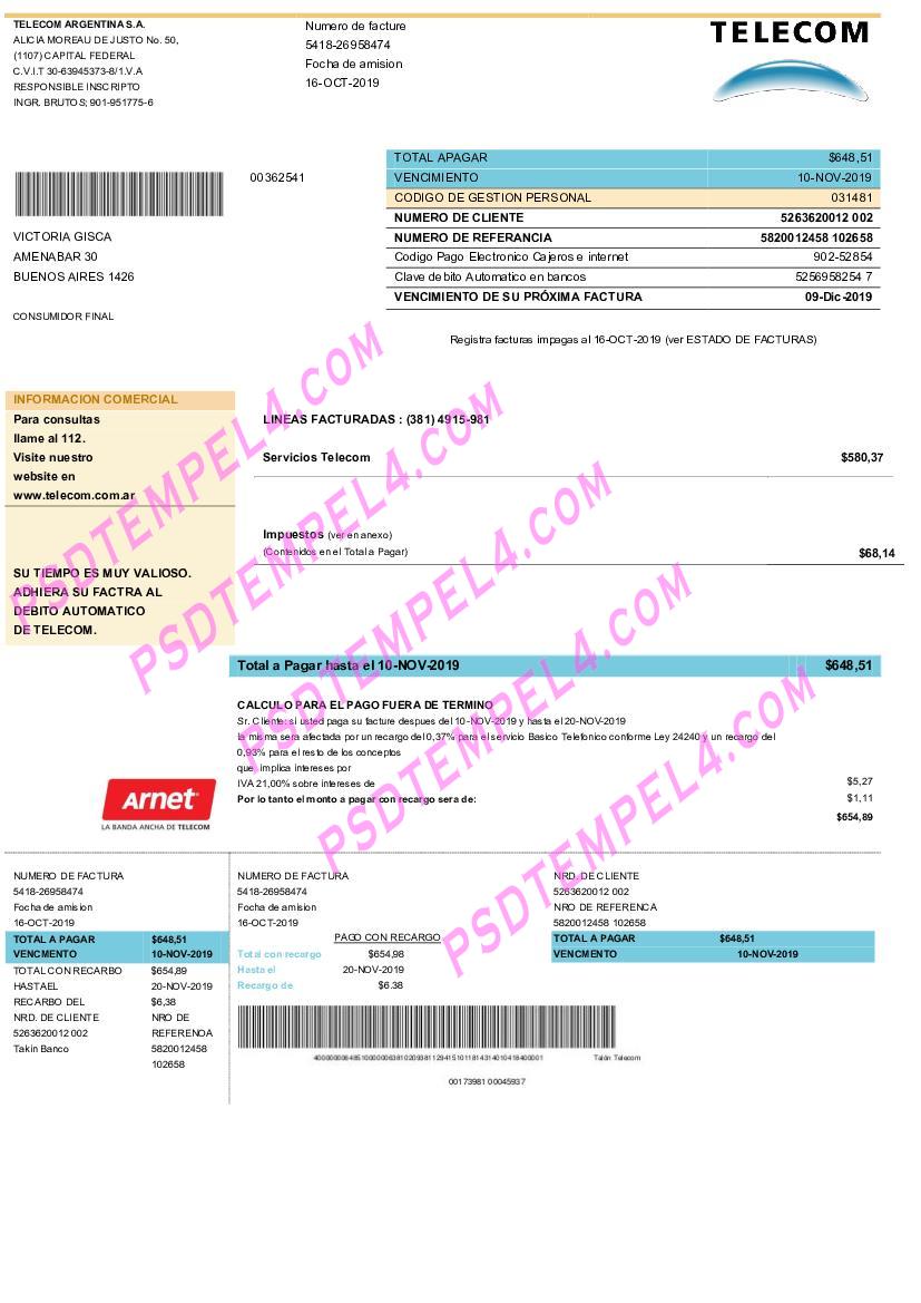 - Argentina telecom Utility Bill Template Word Editable: This template allows you to open and edit the bill using Microsoft Word. It’s ideal for those who need a customizable format.