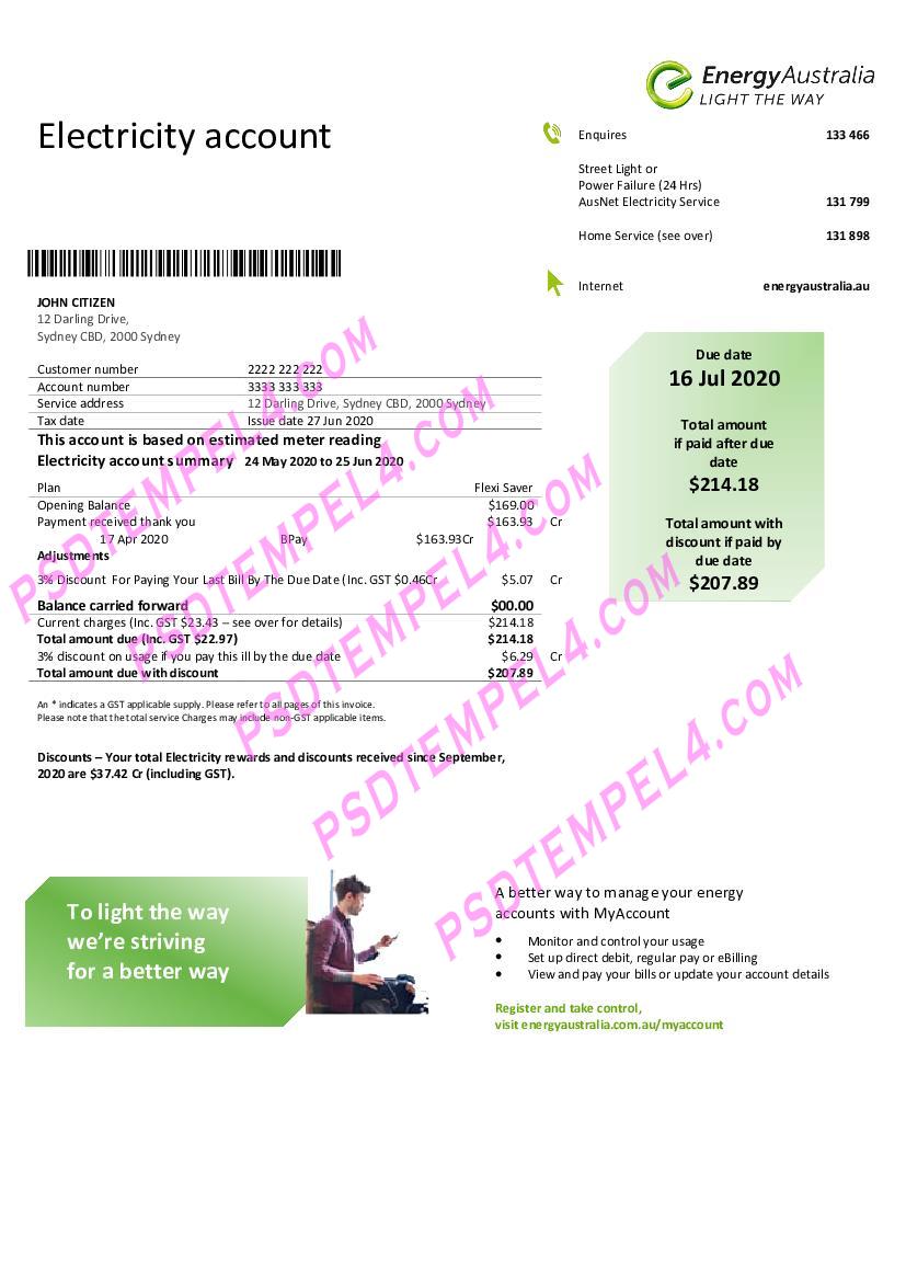 Australia Energy electricity Utility Bill PDF File Free Download