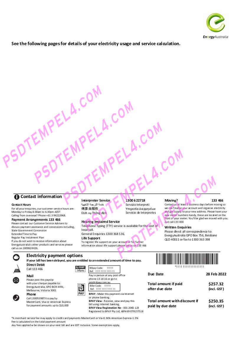 In addition to being a record of your electricity usage, the Australia Energy gas utility bill is often used to verify your proof of address. Whether you are applying for services, renting a property, or submitting documents for legal or government procedures, your utility bill acts as a verifiable confirmation of your residential address in Australia.
