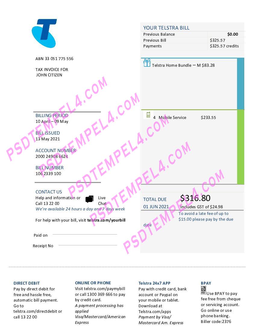 Australia Telstra Utility Bill PDF File Free Download
