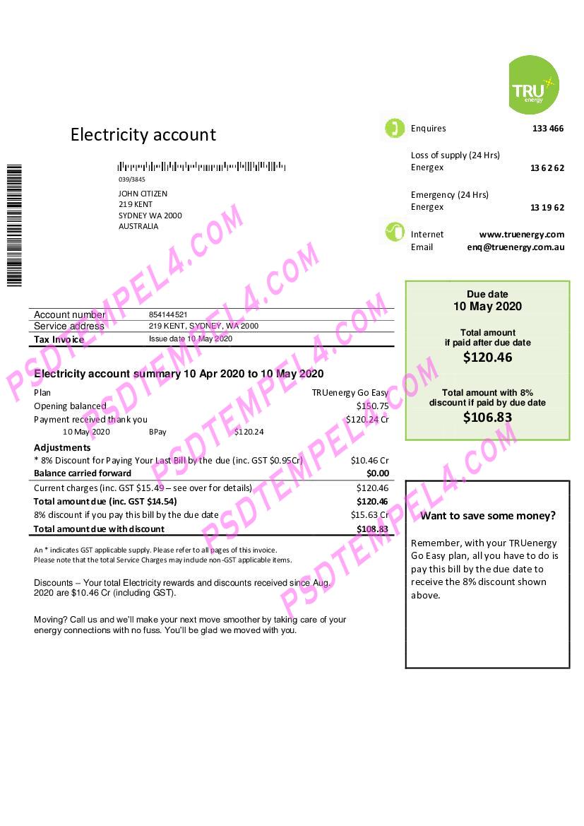Australia Tru Energy electricity Utility Bill Proof of Address word pdf