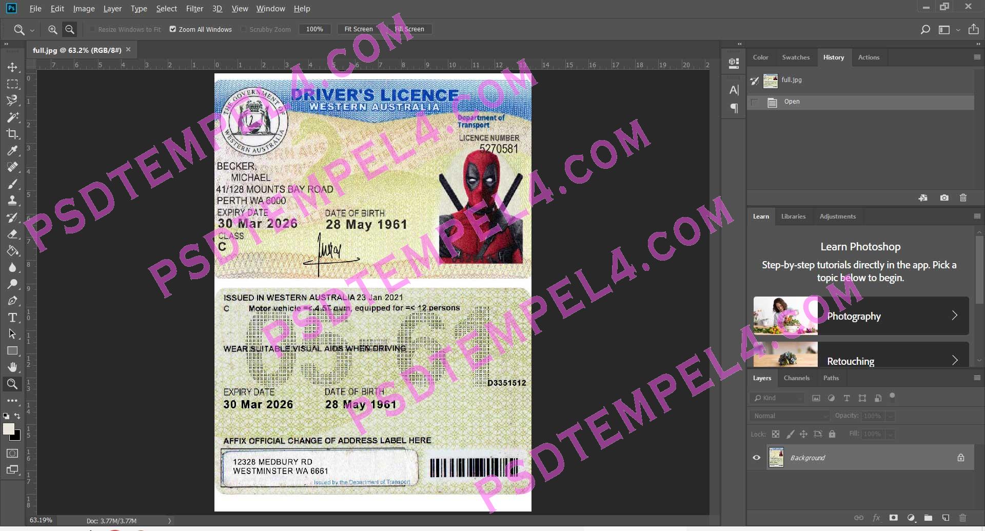 Download Australia western Driver License Photoshop PSD File Template Fully Editable