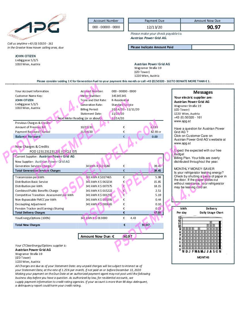 Austria austri power grid ag Utility Bill Proof of Address word pdf