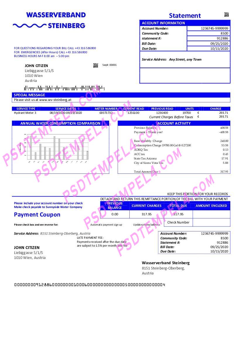 For the most up-to-date formats, you can download Austria utility bill 2025 versions. These updated templates reflect the latest design and format used by Austria Wasserverband Steinberg water for the current year. Whether you need a new bill for proof of address or are managing administrative tasks, this updated version ensures you have the most accurate and current billing information.