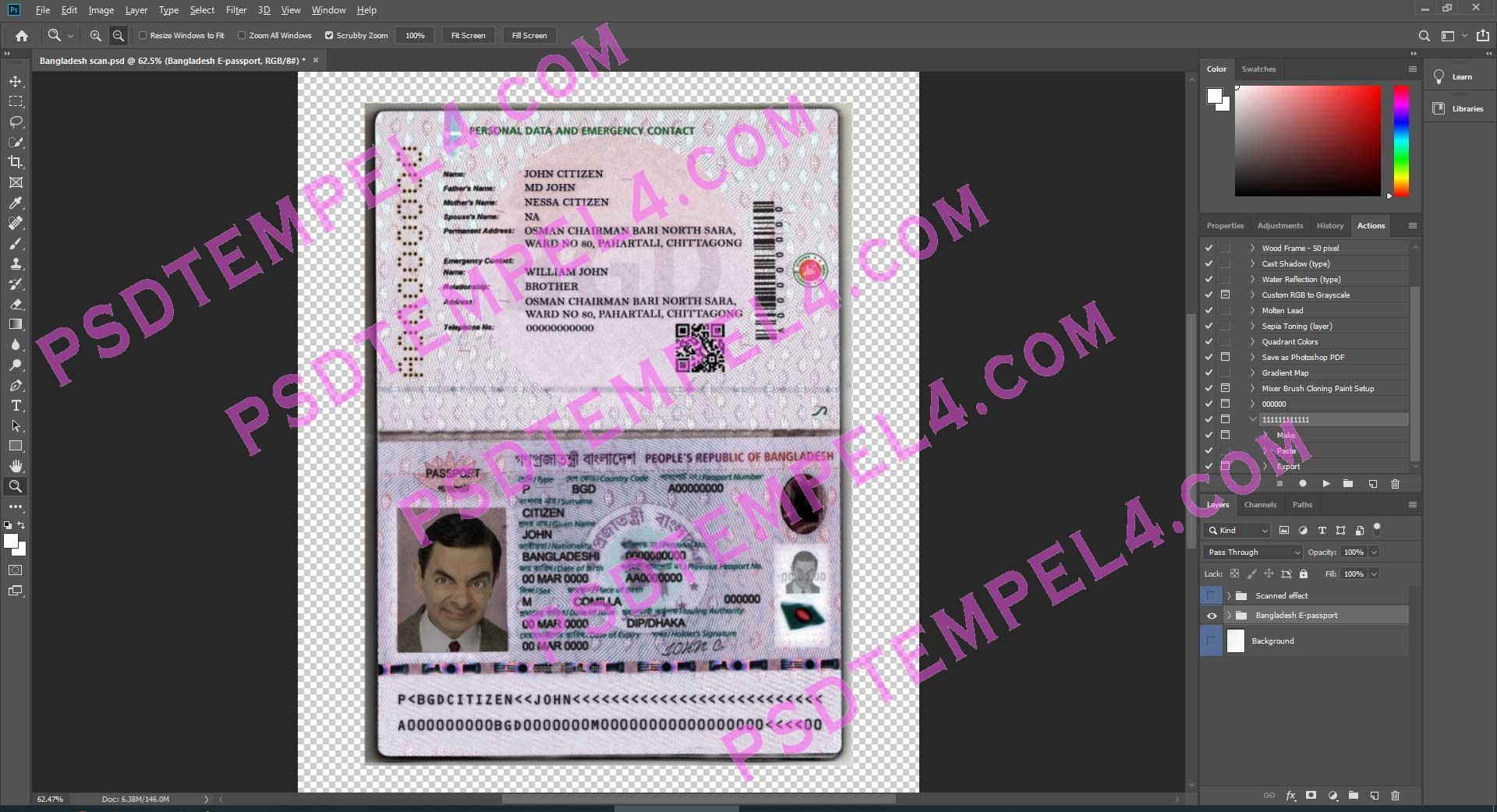 Fake Bangladesh passport PSD Photoshop buy Online