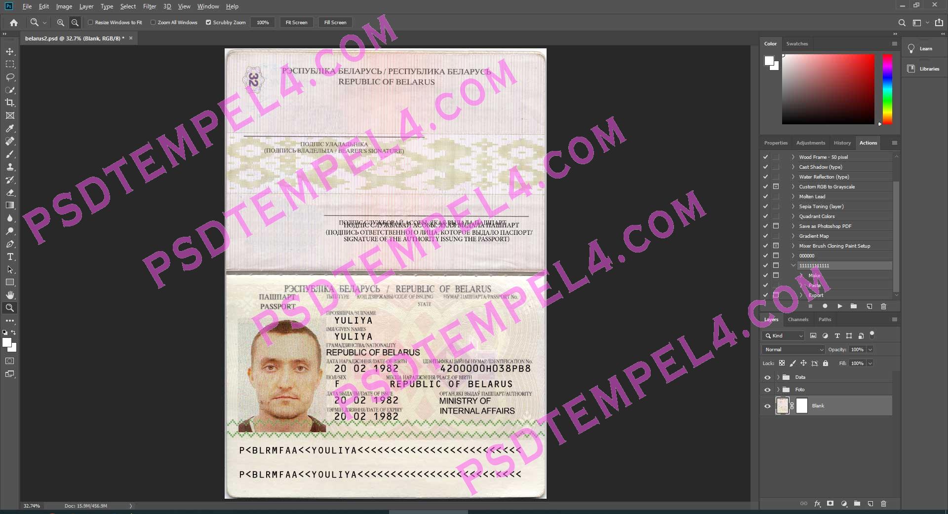 download Belarus Passport psd template, Buy Belarus fake high quality passport Photoshop fully editable and price right and Unique.