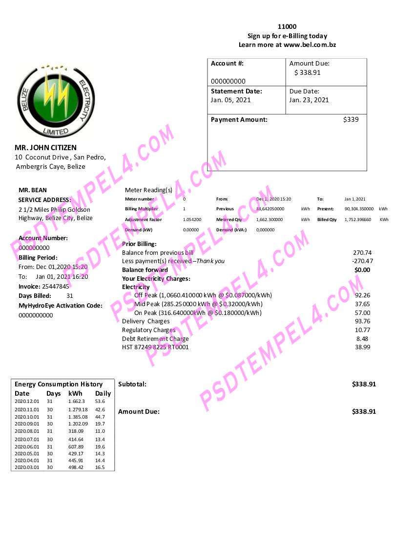 Editable Belize Utility Bill Templates