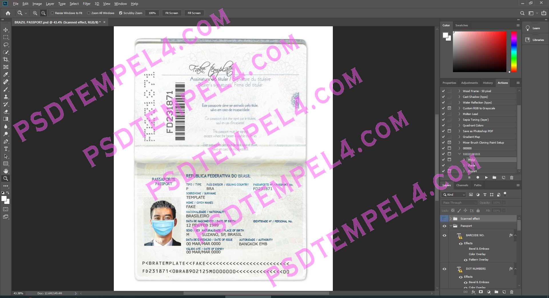 Fake Brasil brazil passport PSD Photoshop buy Online