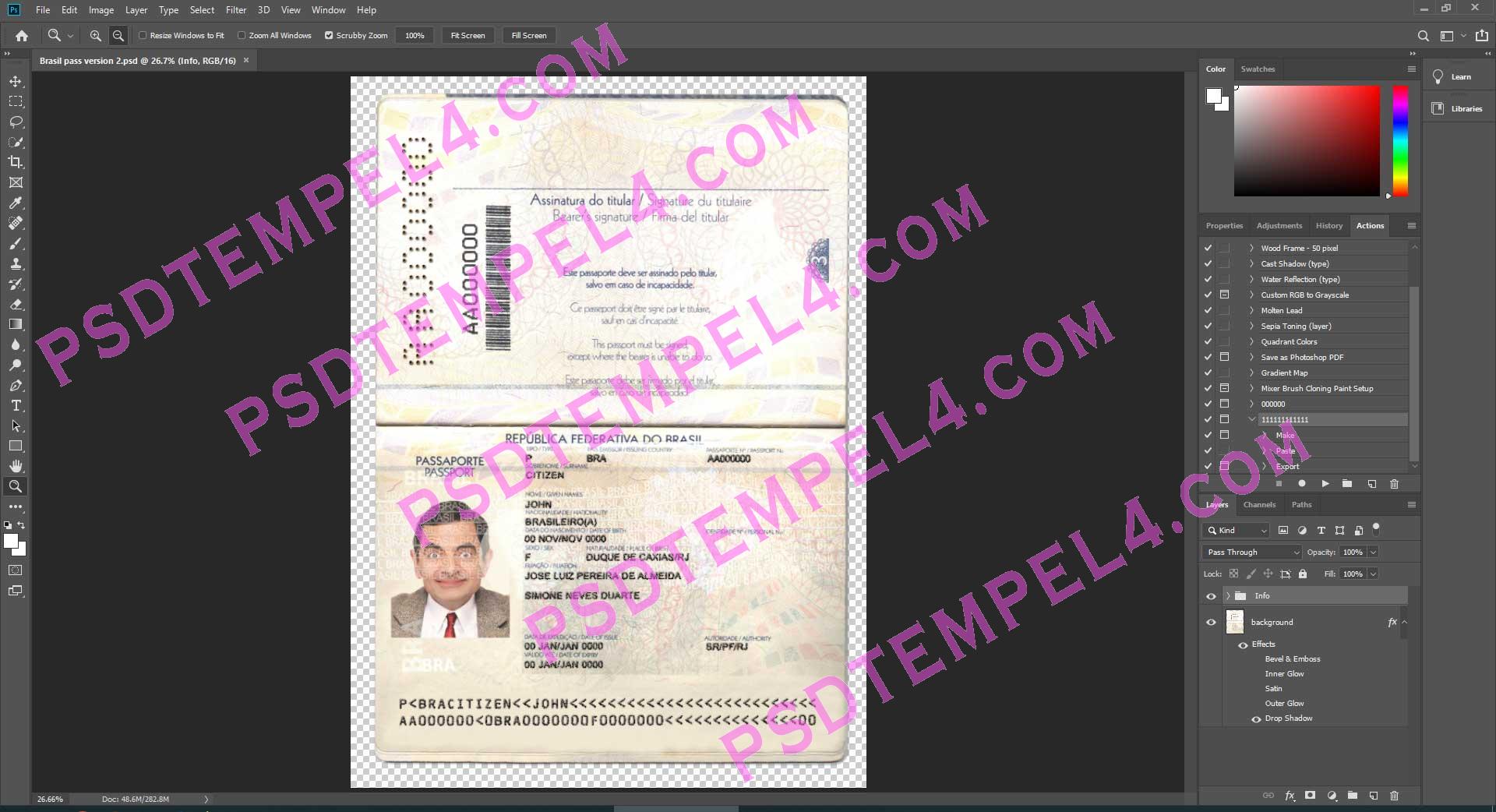 download Brasil brazil Passport psd template, Buy Brasil brazil fake high quality passport Photoshop fully editable and price right and Unique.
