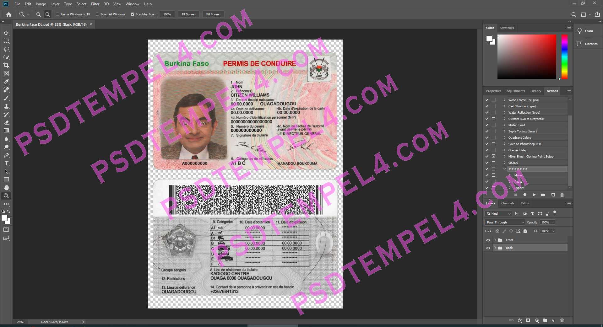 download Burkina Faso Driver License psd fake template fully editable