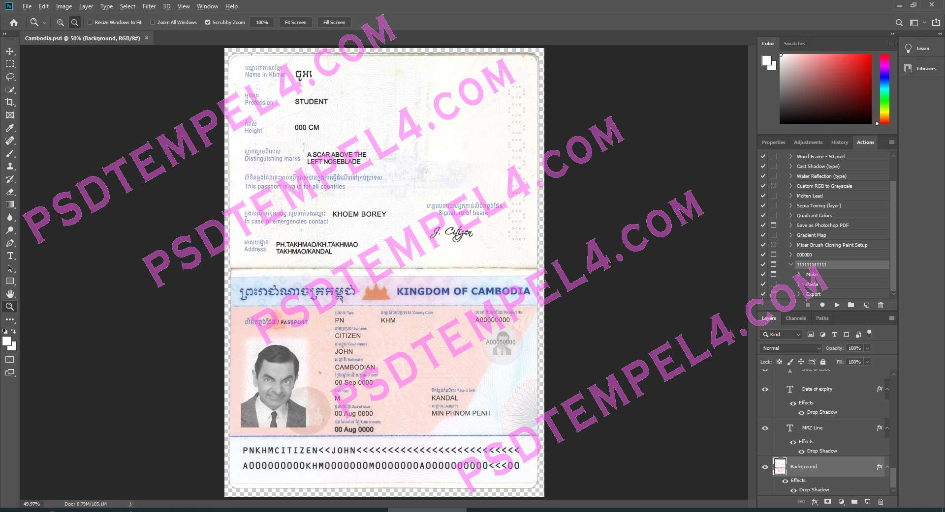Download Cambodia passport Photoshop PSD File Template Fully Editable