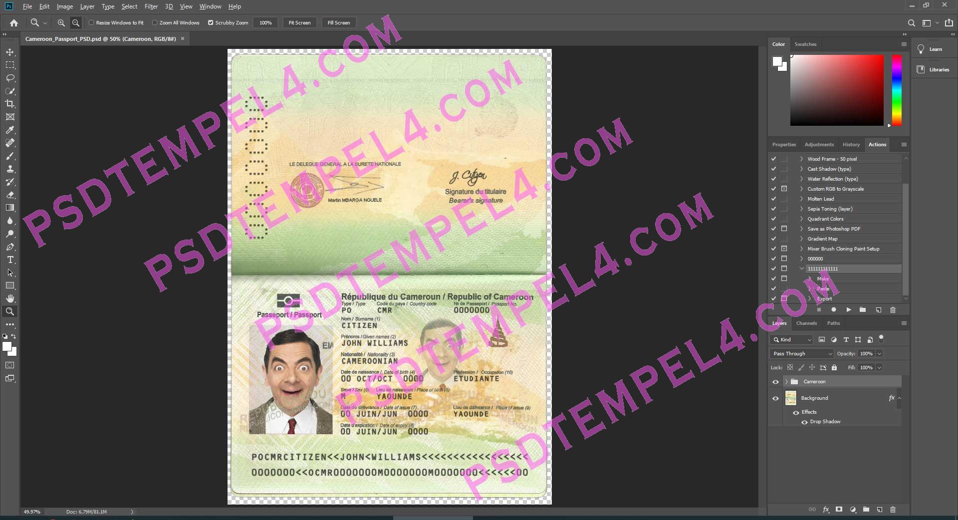 Download Cameroon passport Photoshop PSD File Template Fully Editable