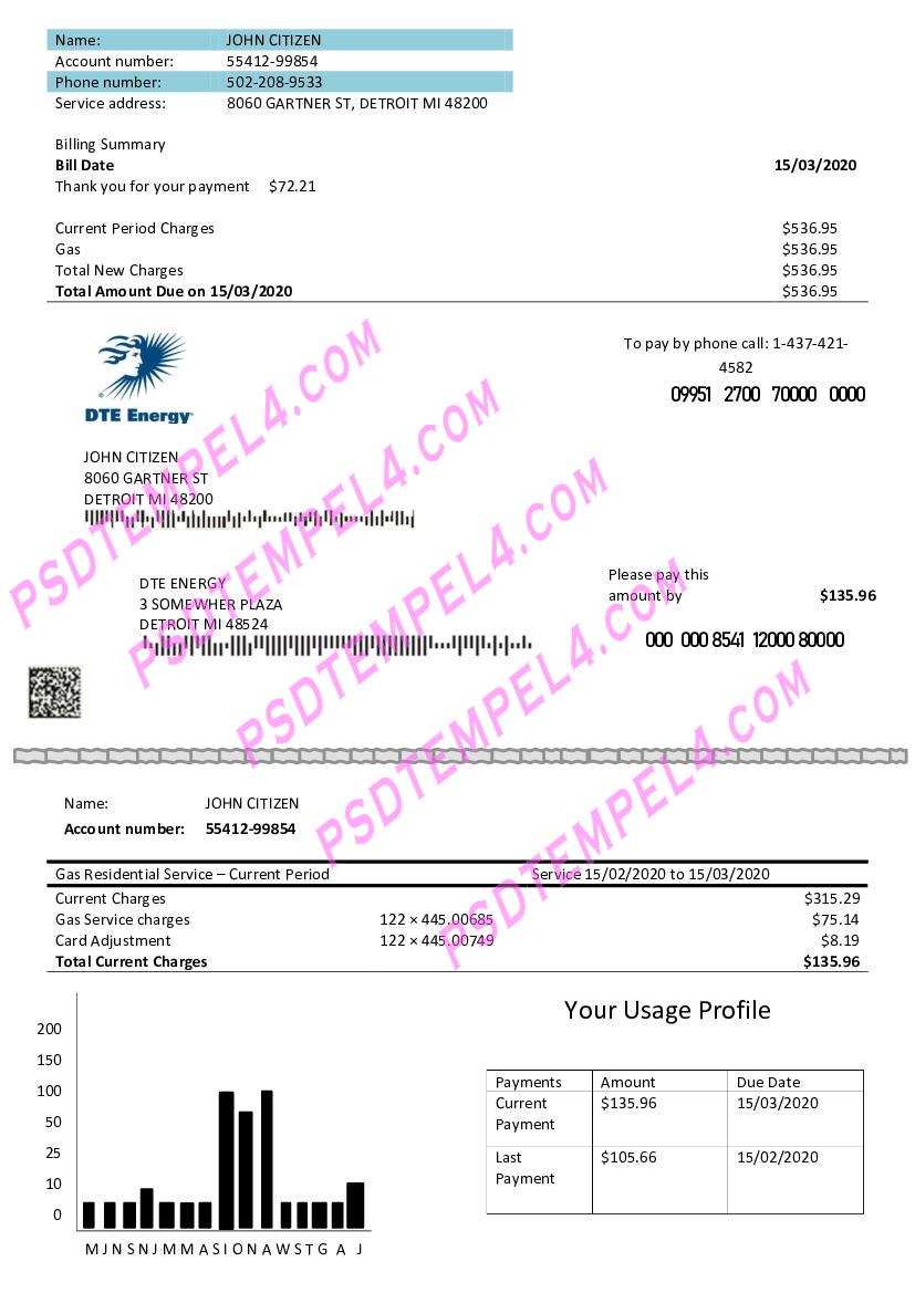 Canada DTE Energy Utility Bill PDF File Free Download