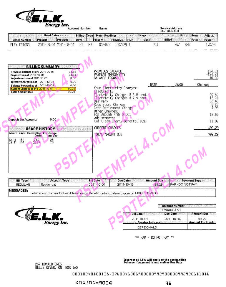 Canada ELK energy Utility Bill PDF File Free Download