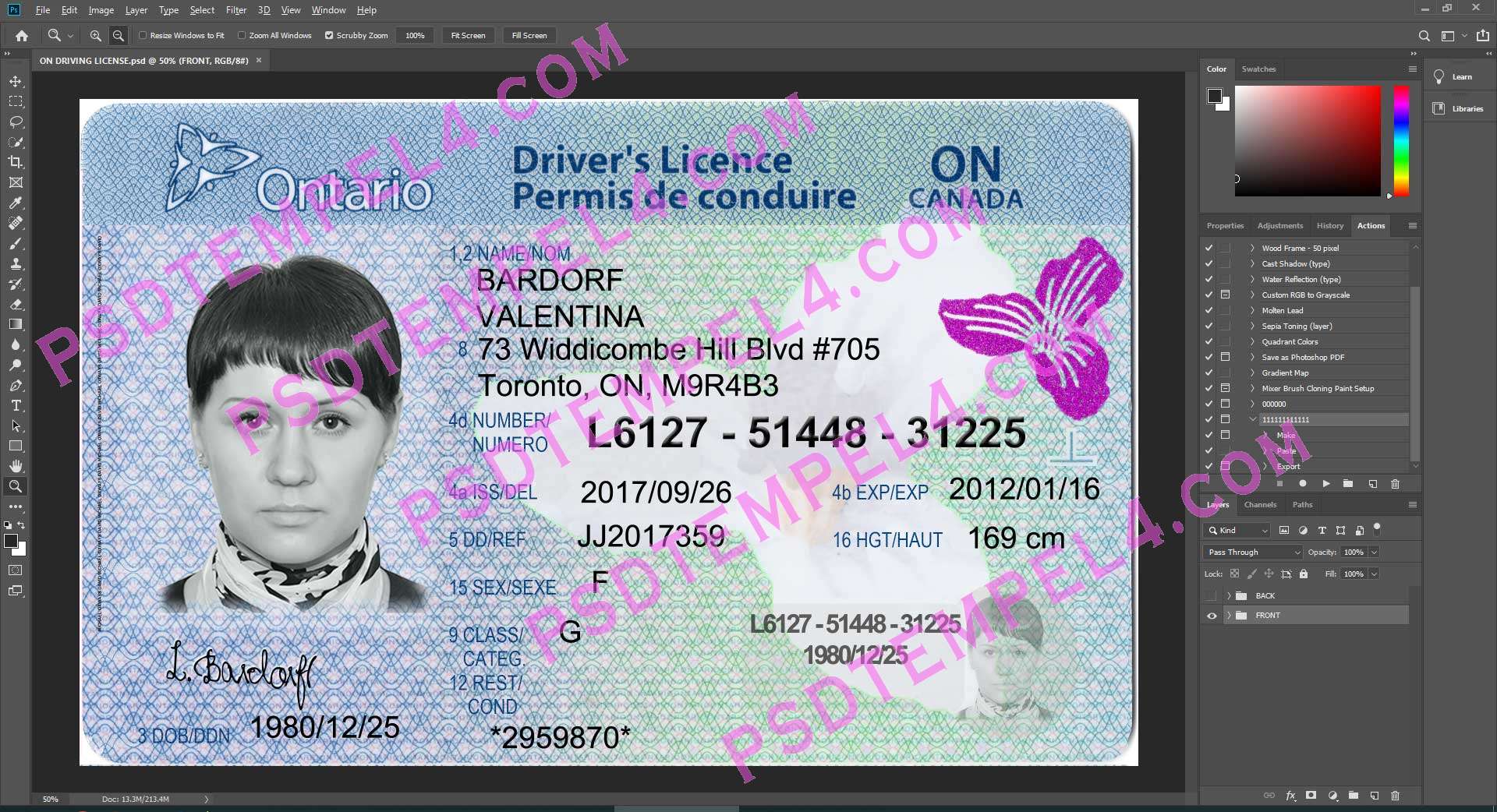 Download Canada Ontario Driver License File PSD templates high quality