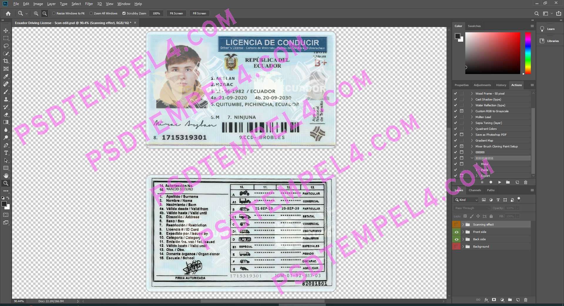 Download Ecuador Driver License File PSD templates high quality
