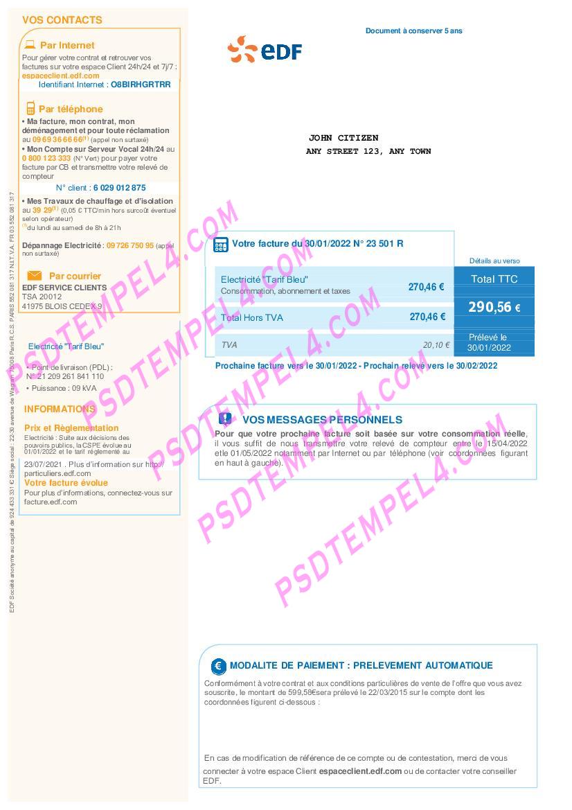 France electricity EDF V2 Utility Bill Proof of Address word pdf