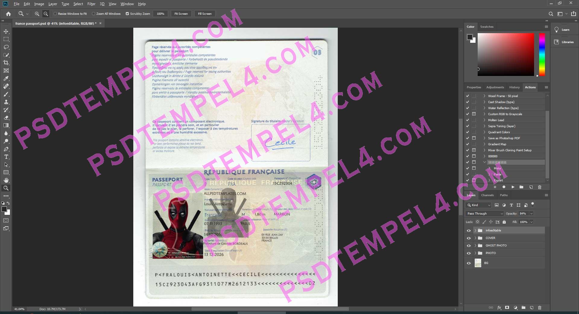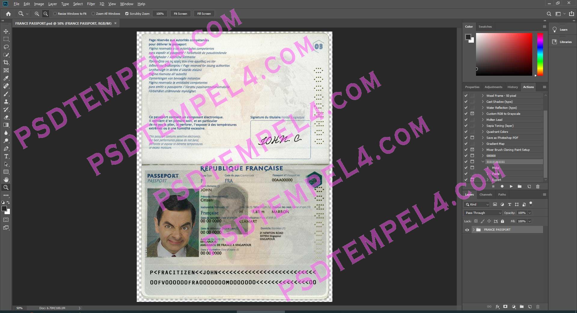 download France Passport psd template, Buy France fake high quality passport Photoshop fully editable and price right and Unique.
