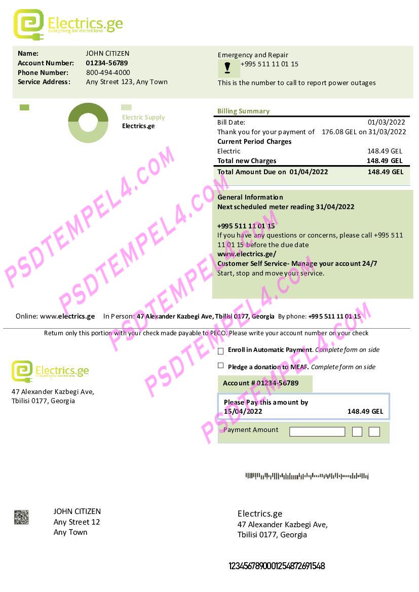 Georgia Electrics ge Utility Bill PDF File Free Download
