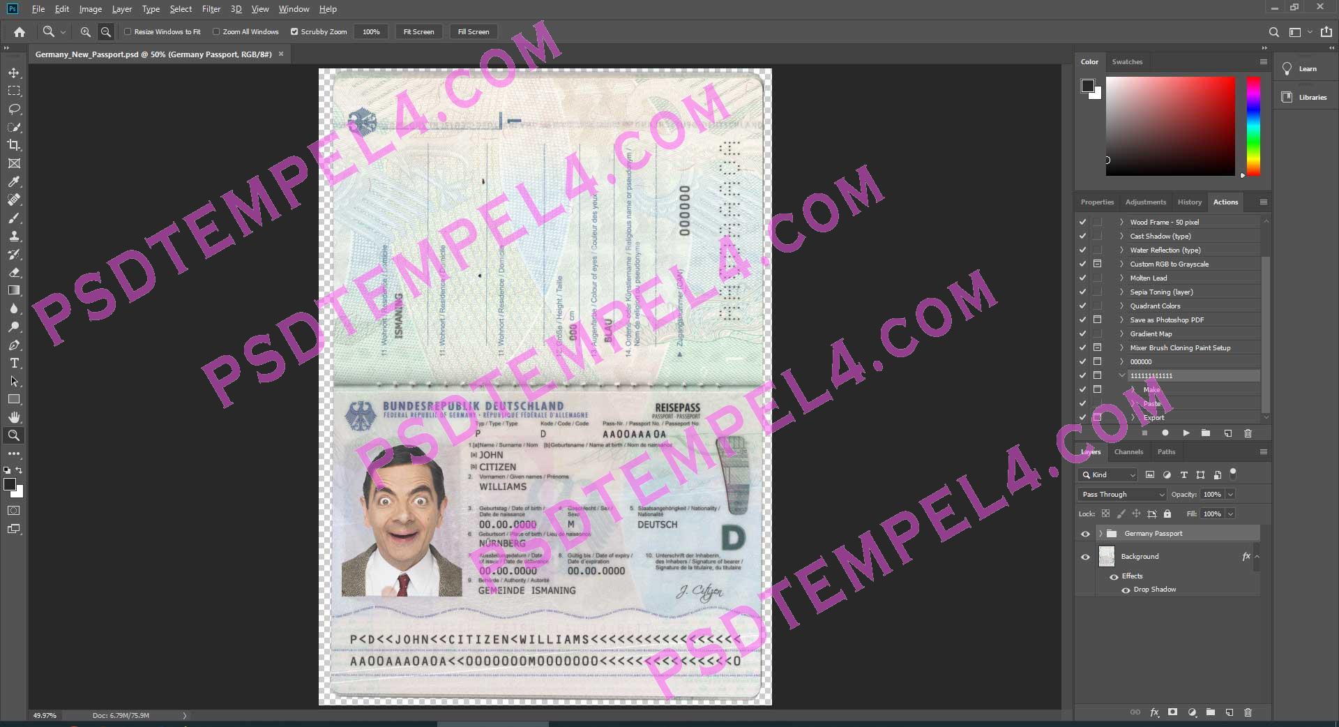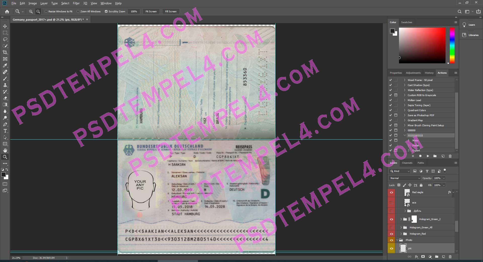 download Germany Passport psd template, Buy Germany fake high quality passport Photoshop fully editable and price right and Unique.