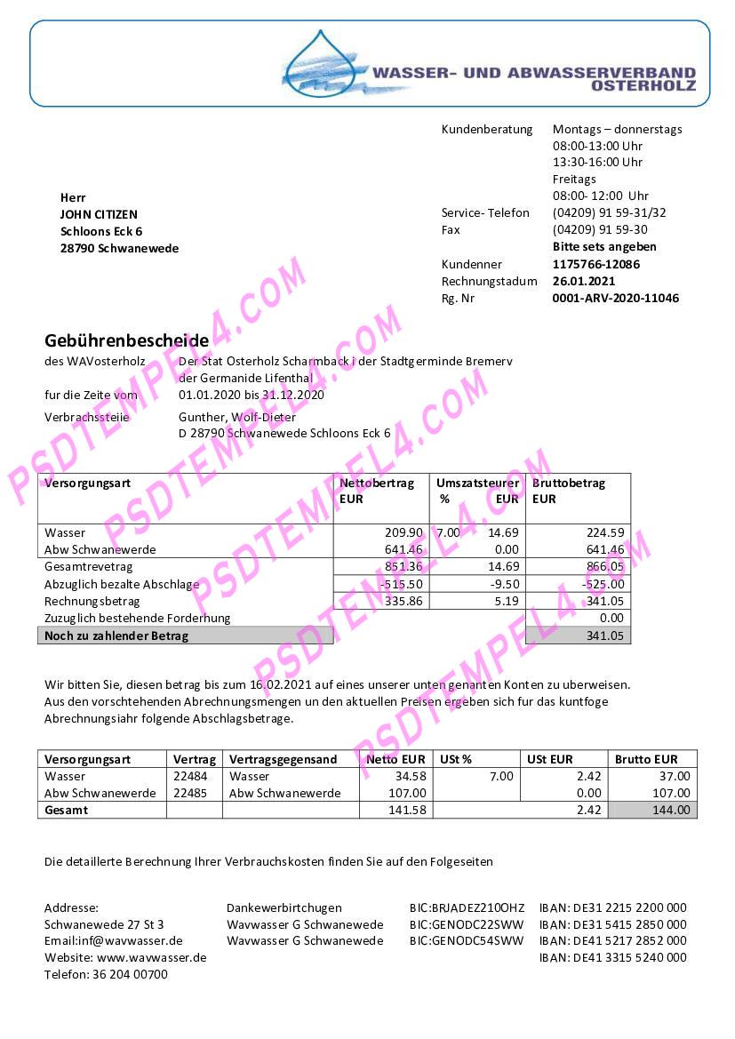 Germany wavwasser Utility Bill Proof of Address word pdf