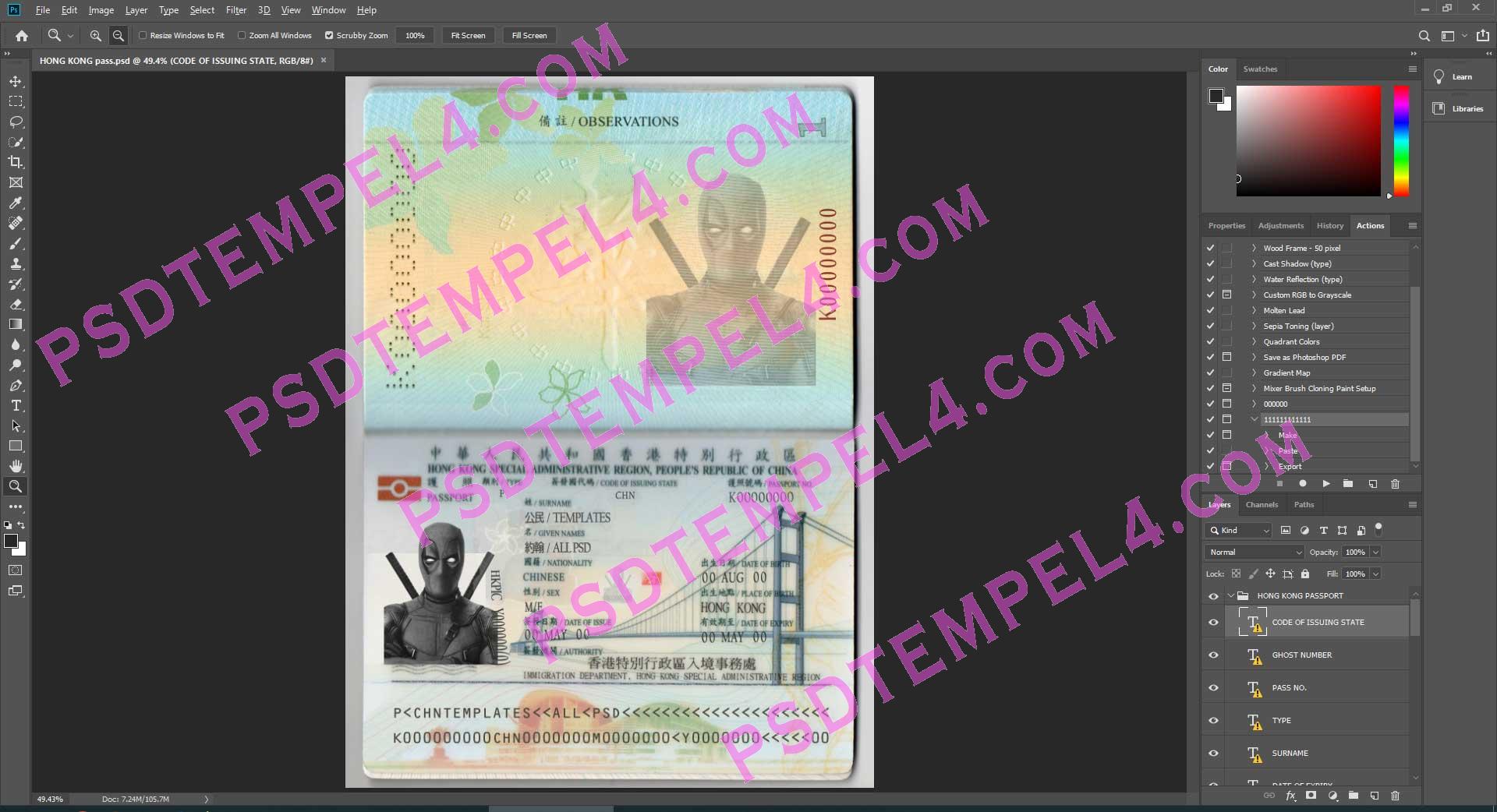 Fake HongKong passport PSD Photoshop buy Online