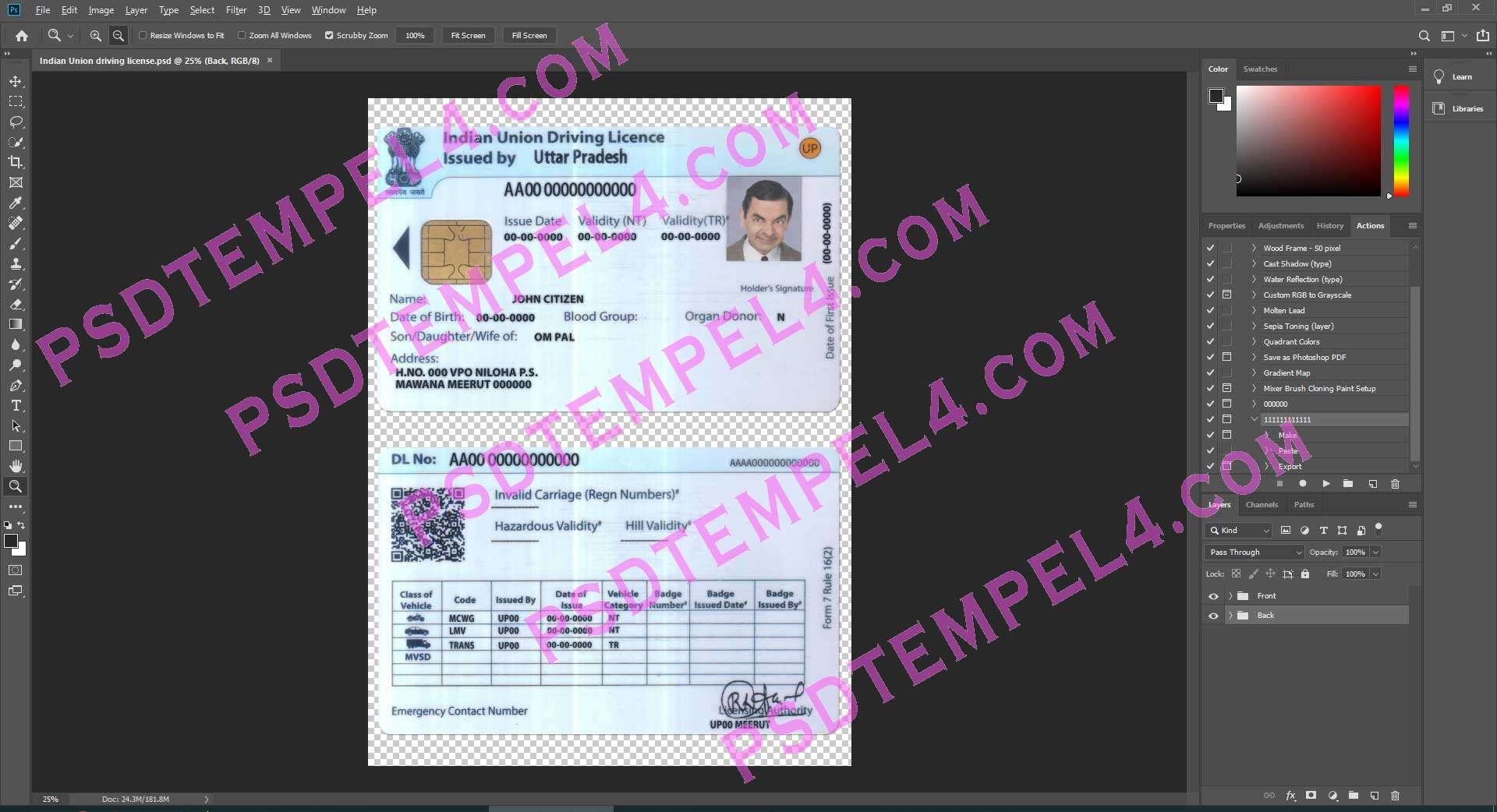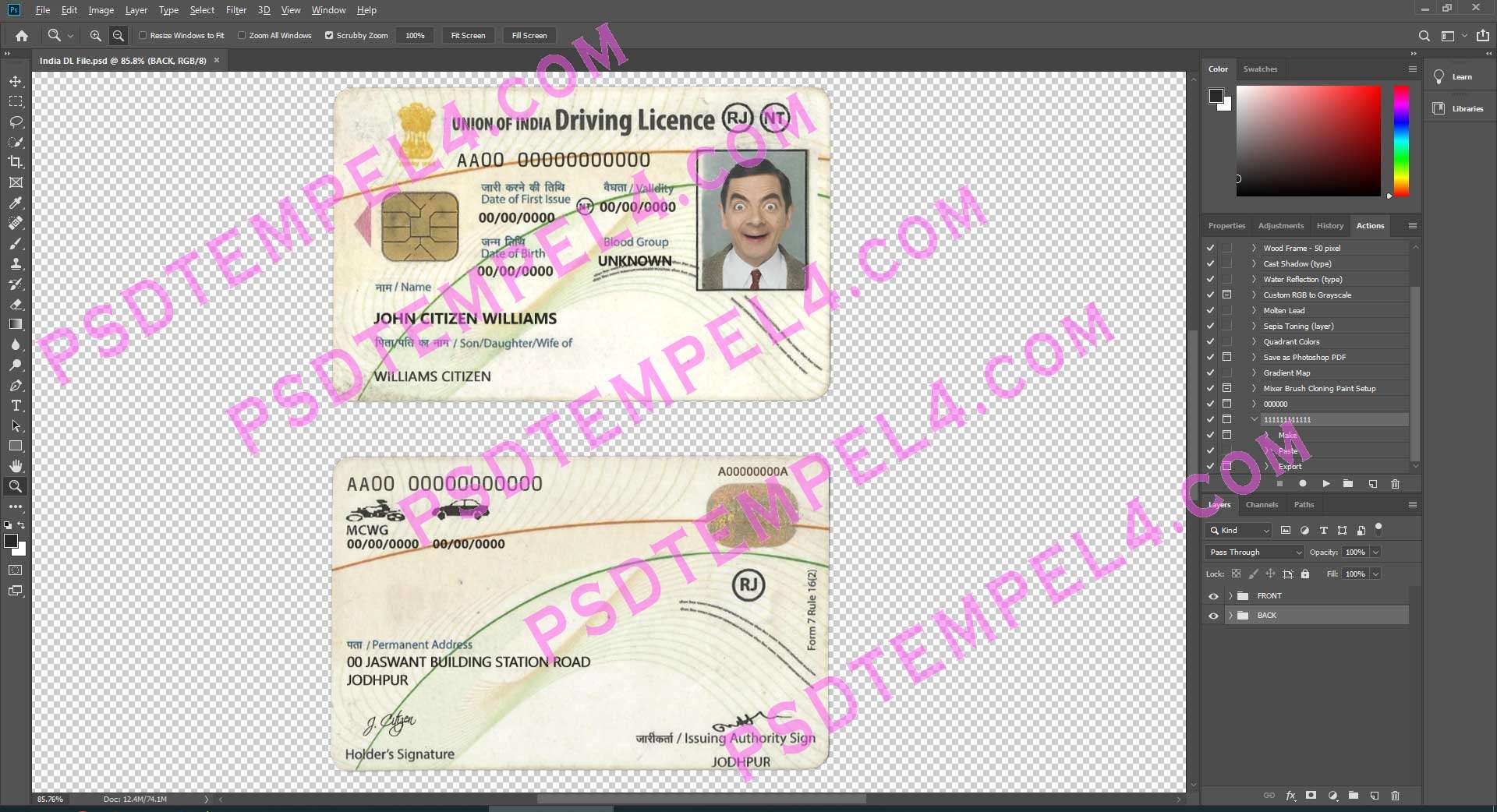 Download India Driver License Photoshop PSD File Template Fully Editable