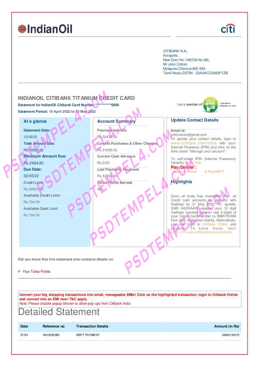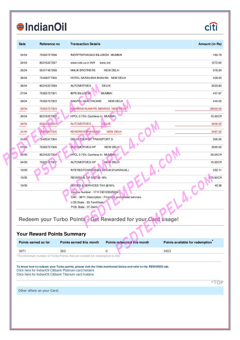 India Indian Oil utility bill as proof of address. editable templates, free downloads example India utility bill format PDF Word