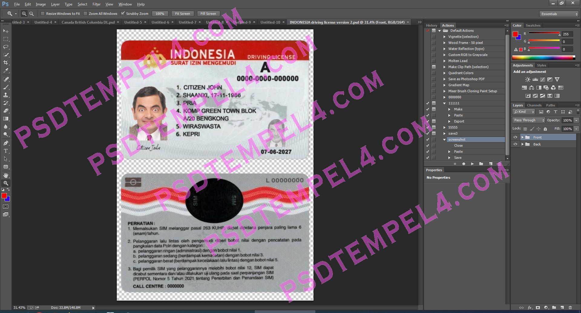 This is template to the Driver License PSD Photoshop File Fully Editable of the Indonesia. The Driver License Template of the Indonesia has been made available to the public through the psdtempel store in psd format and high quality.