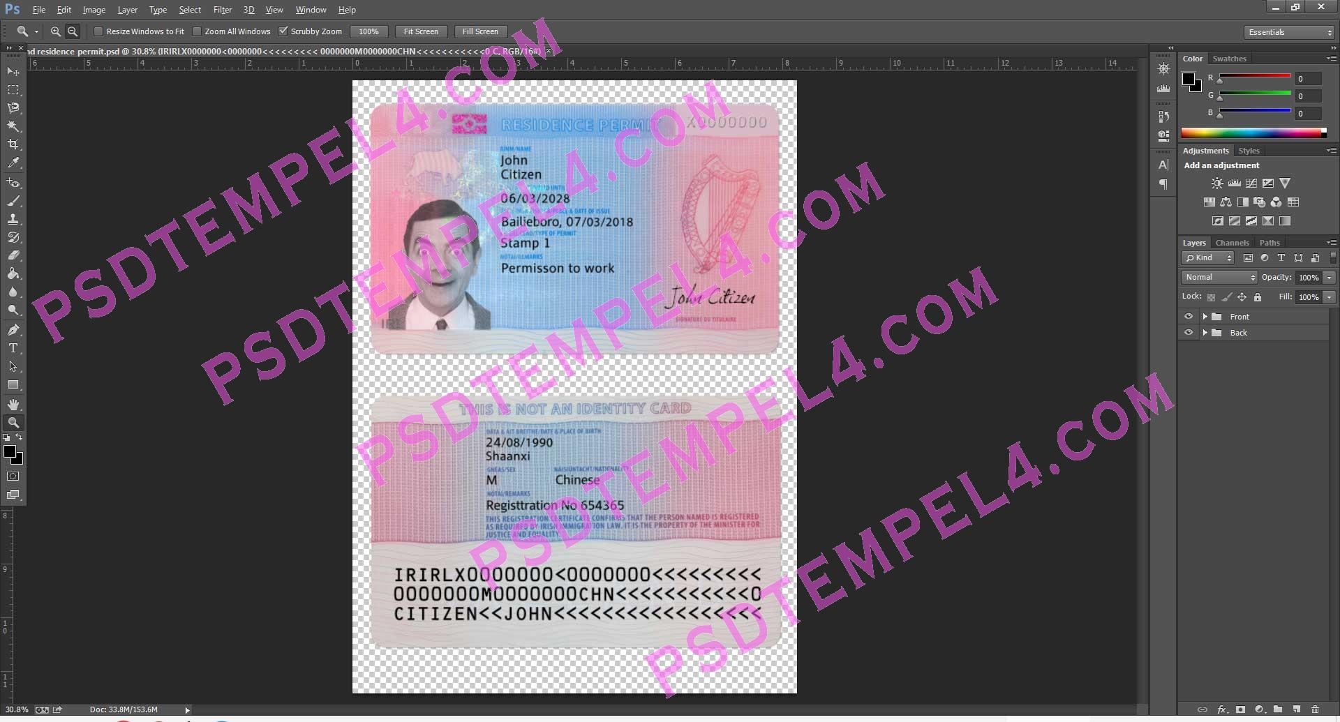 Ireland resident permit psd template
