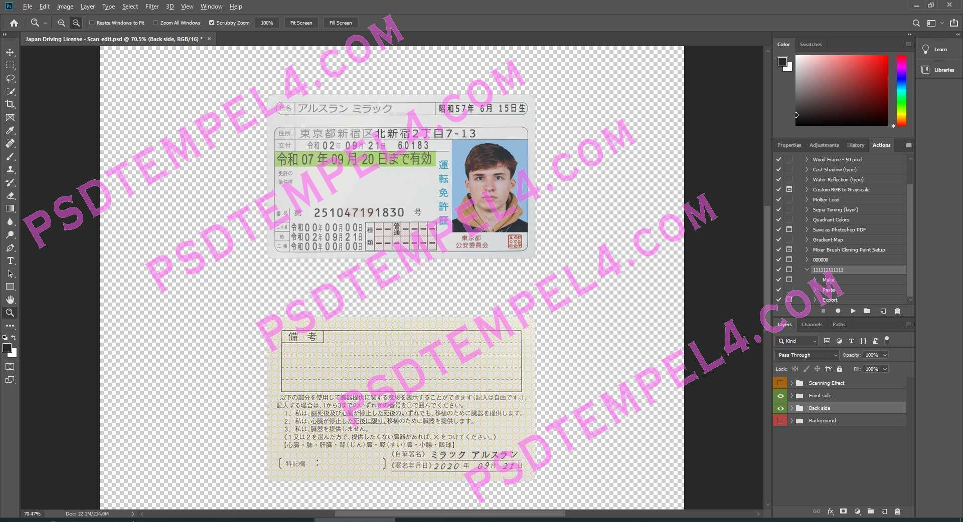 Fake Japan Driver License PSD Photoshop buy Online