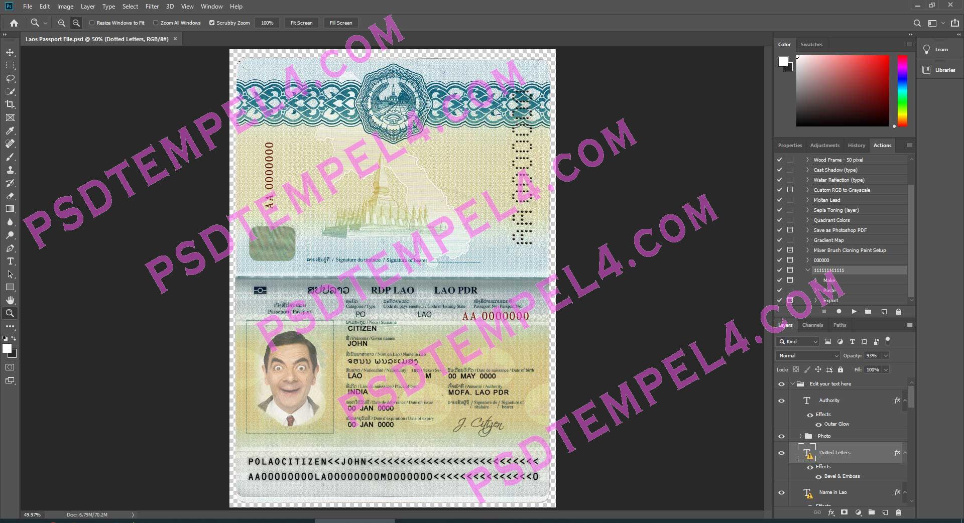 Download Laos passport Photoshop PSD File Template Fully Editable