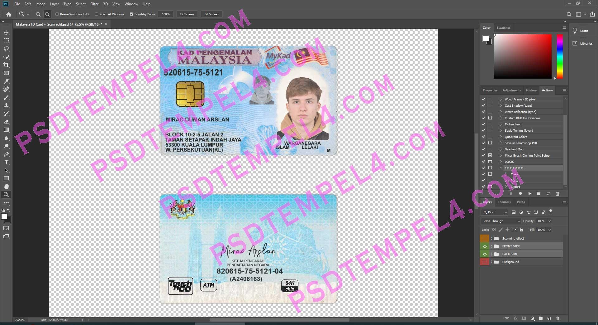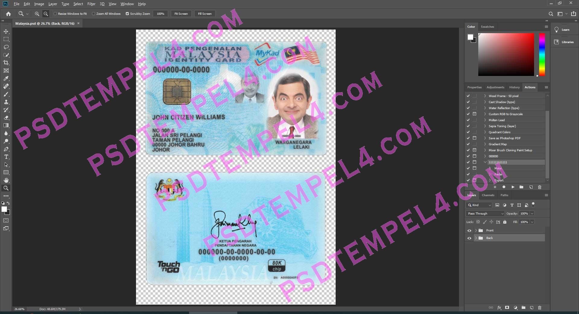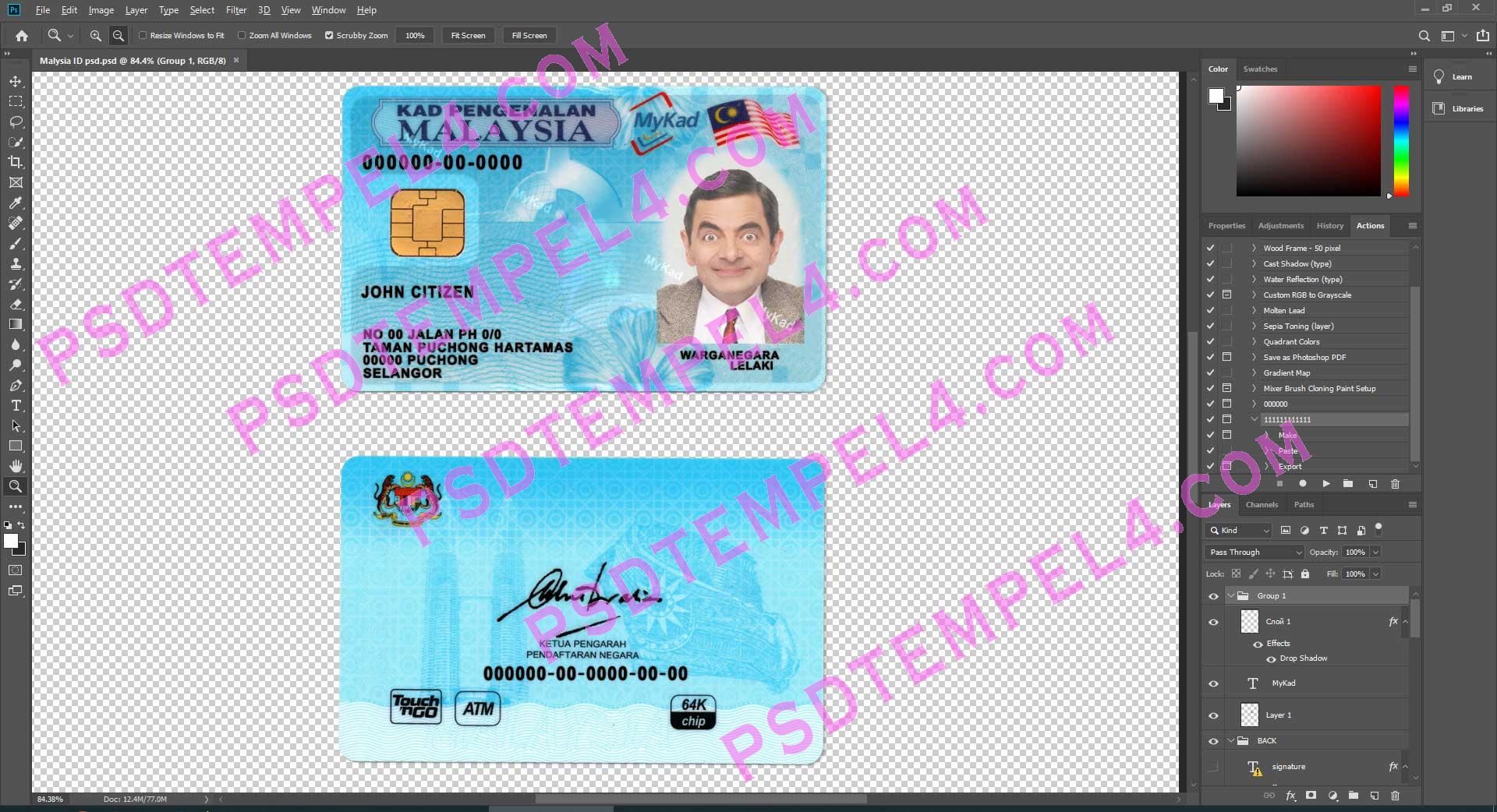 Download Malaysia national id card PSD File Photoshop Template Fully Editable
