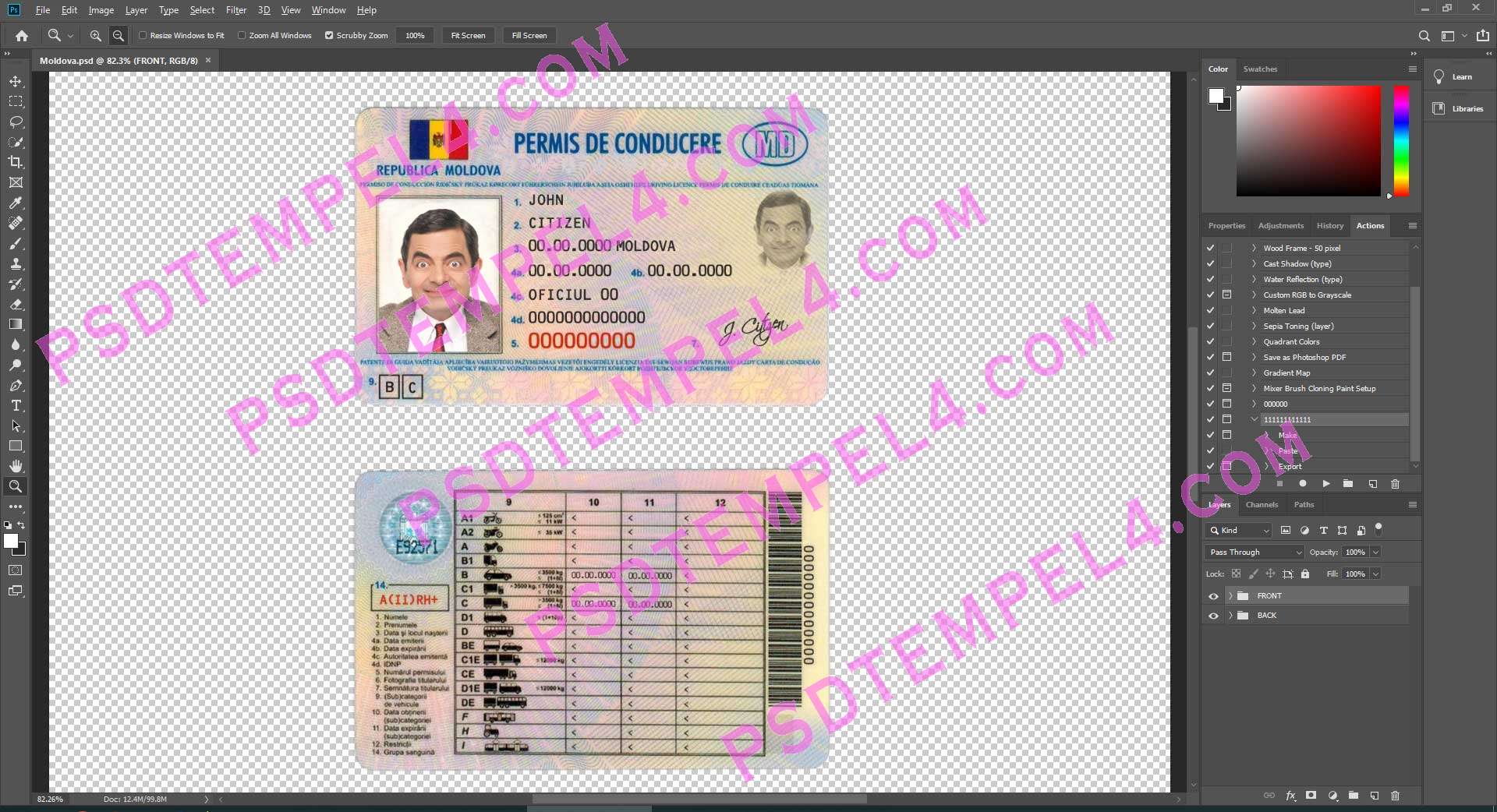 Download Moldova Driver License Photoshop PSD File Template Fully Editable