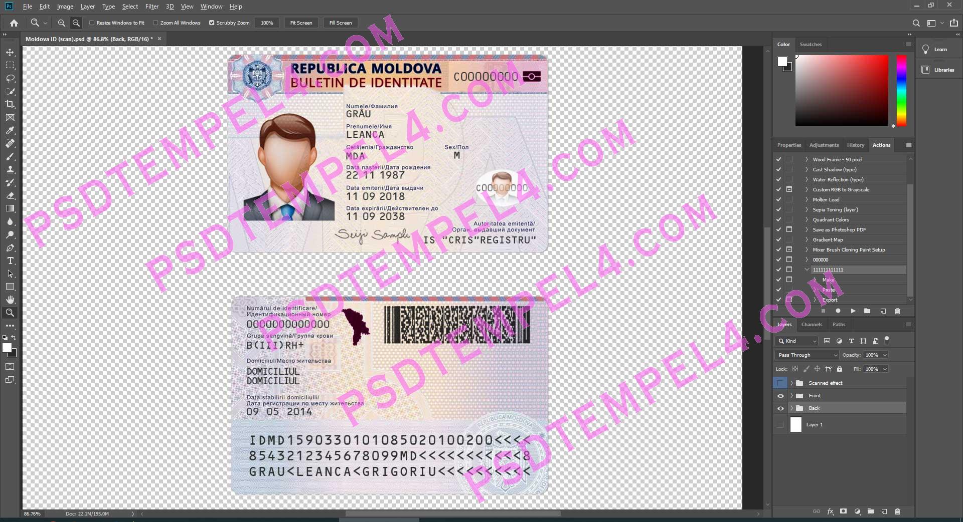 Download Moldova national id card PSD File Photoshop Template Fully Editable
