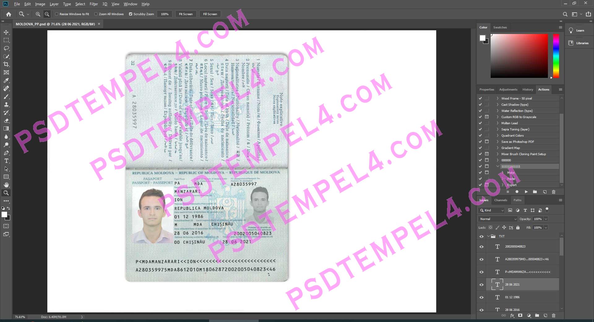 download Moldova Passport psd template, Buy Moldova fake high quality passport Photoshop fully editable and price right and Unique.