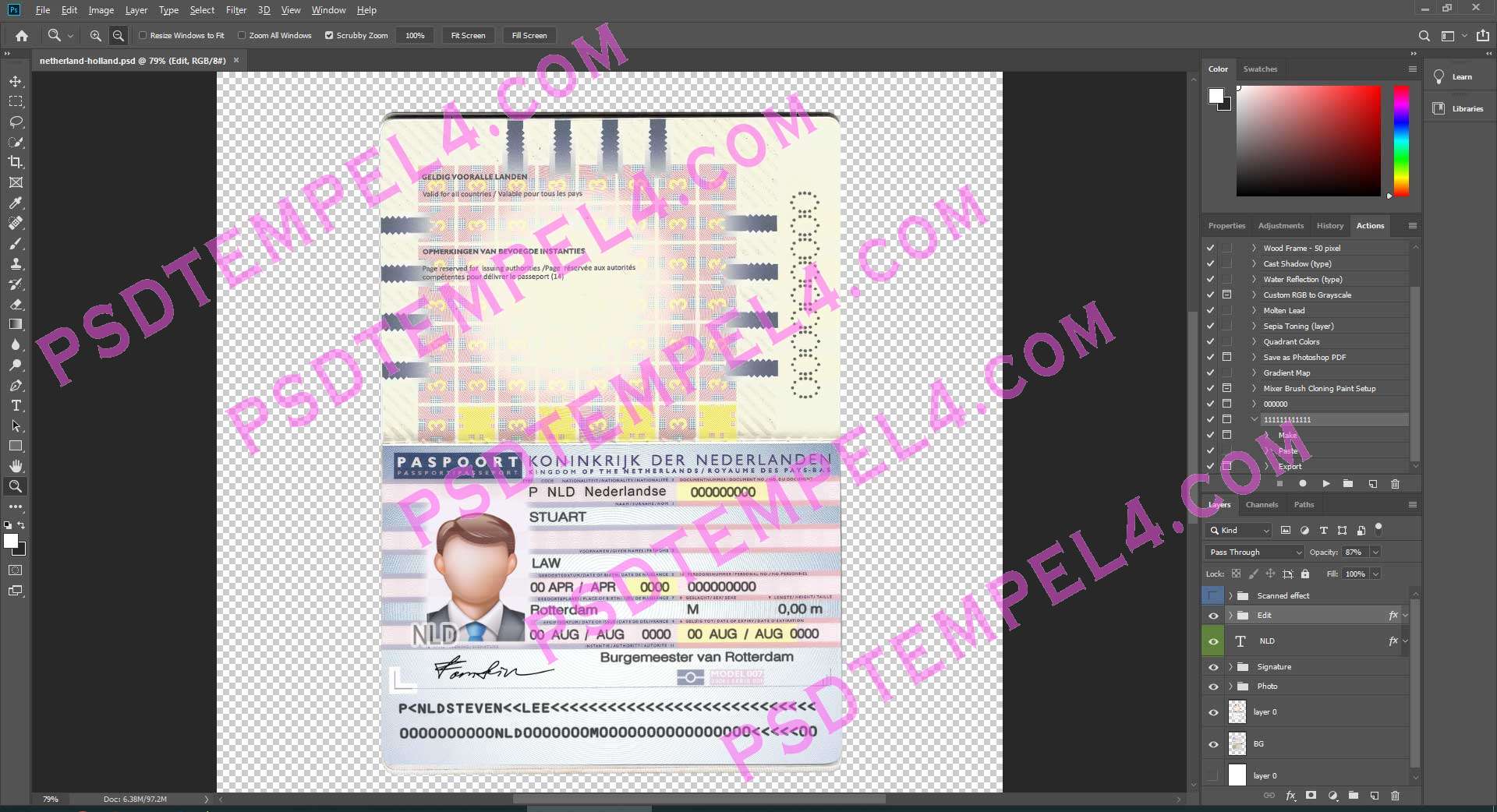download Netherlands Passport psd fake template fully editable
