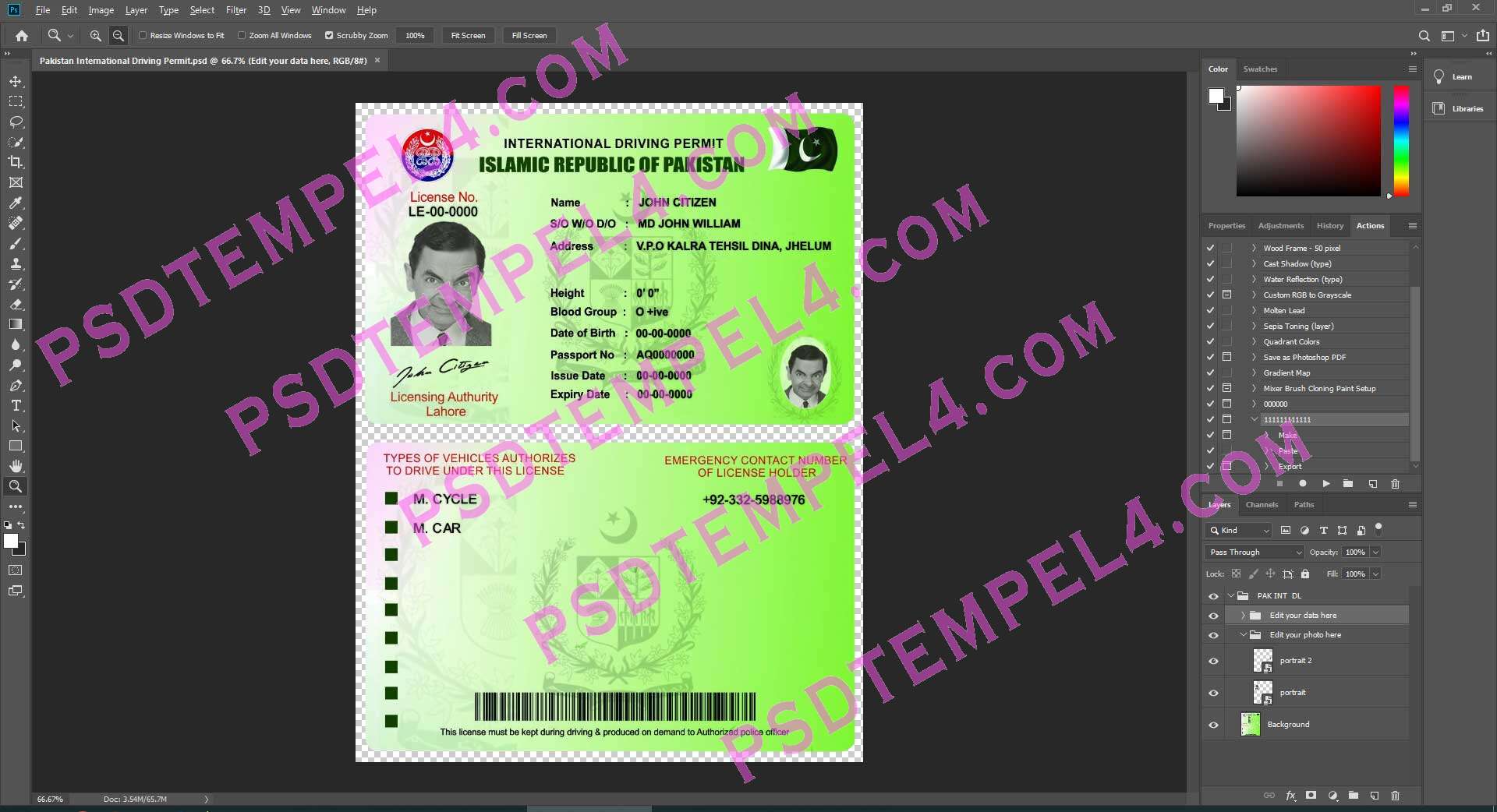 This is template to the Driver License PSD Photoshop File Fully Editable of the Pakistan. The Driver License Template of the Pakistan has been made available to the public through the psdtempel store in psd format and high quality.