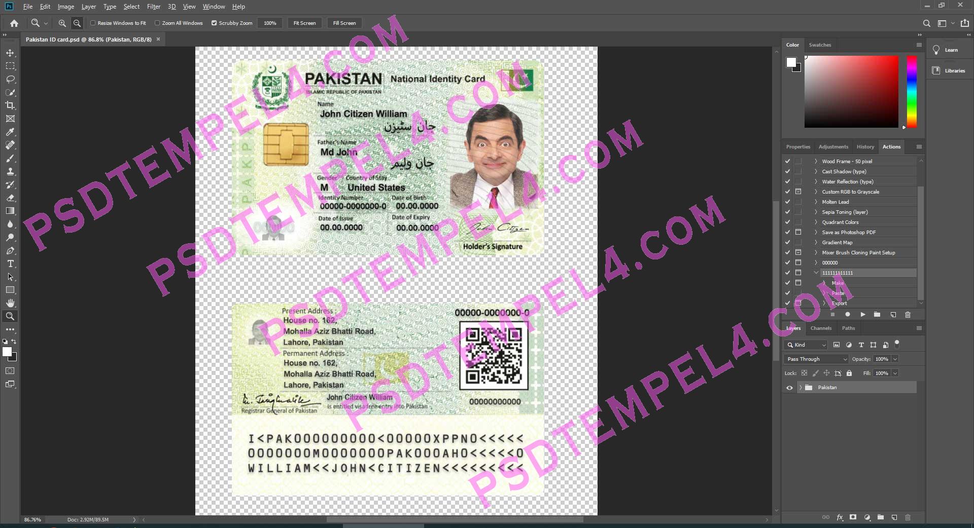Download Pakistan national id card PSD File Photoshop Template Fully Editable
