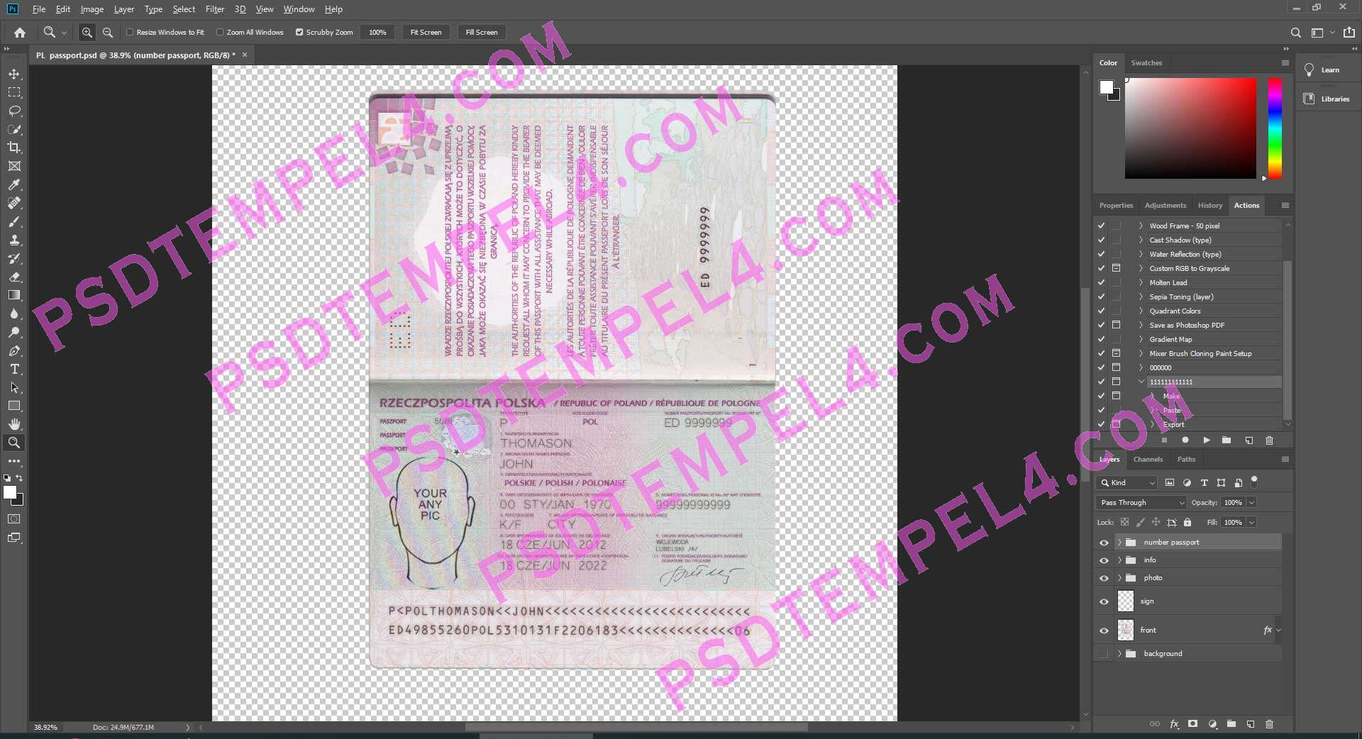 Download Poland passport Photoshop PSD File Template Fully Editable