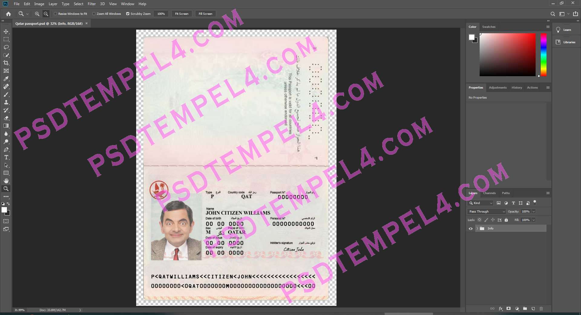 download qatar Passport psd template, Buy qatar fake high quality passport Photoshop fully editable and price right and Unique.