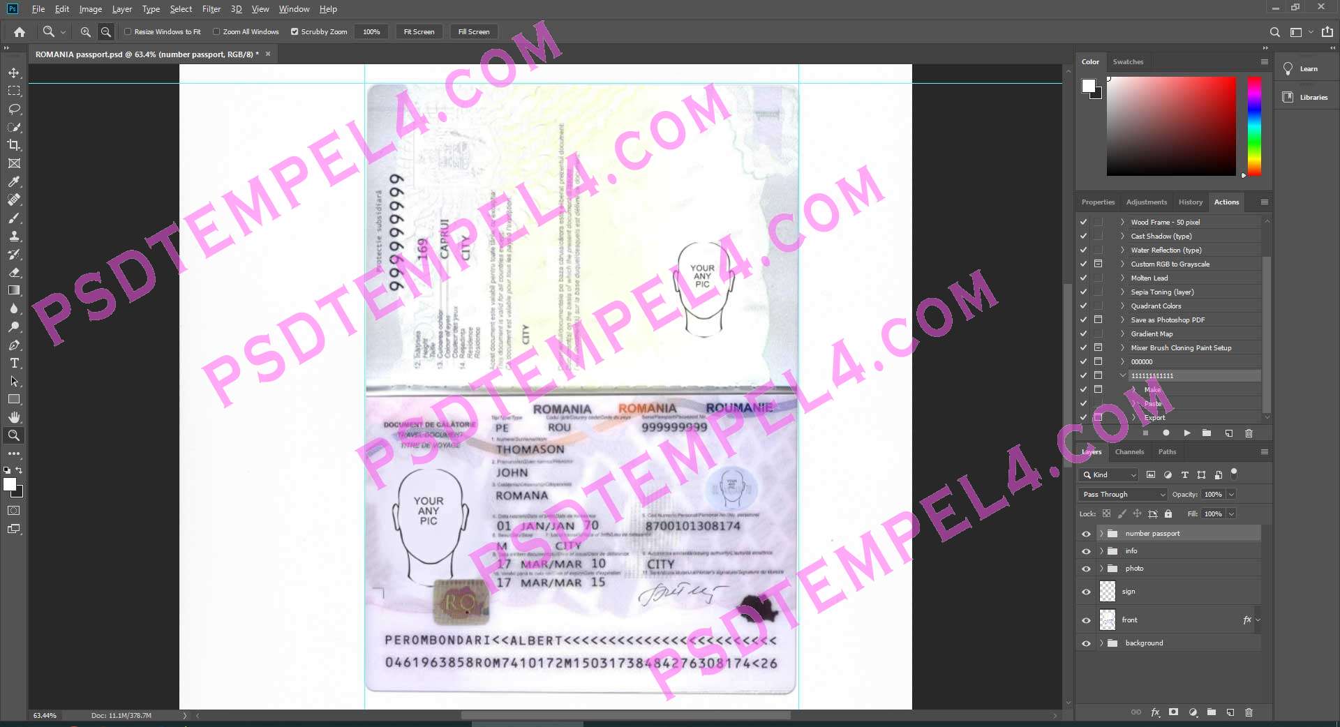 Romania passport free PSD download