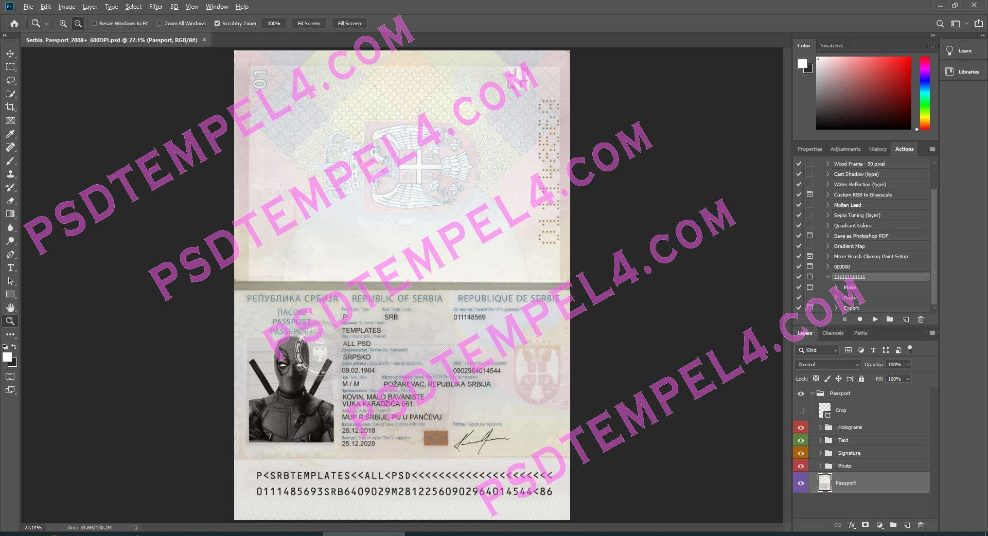 Download Serbia passport Photoshop PSD File Template Fully Editable