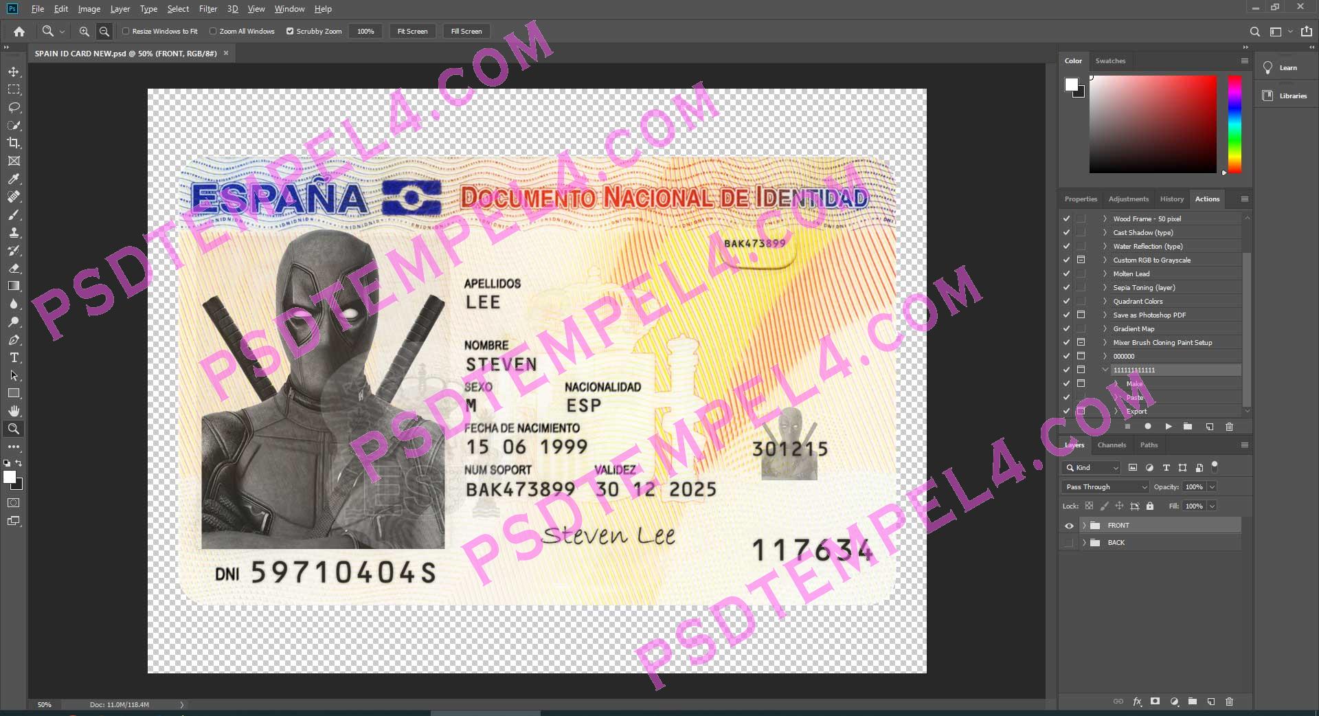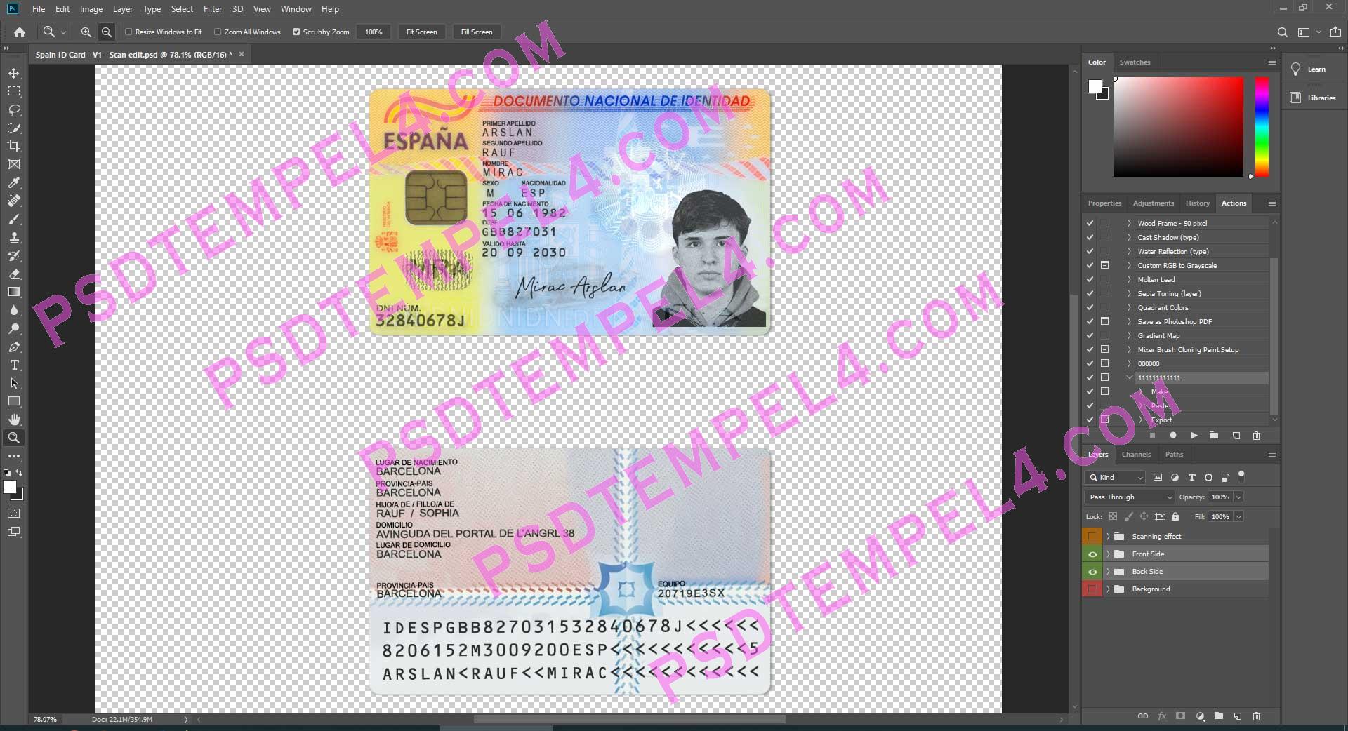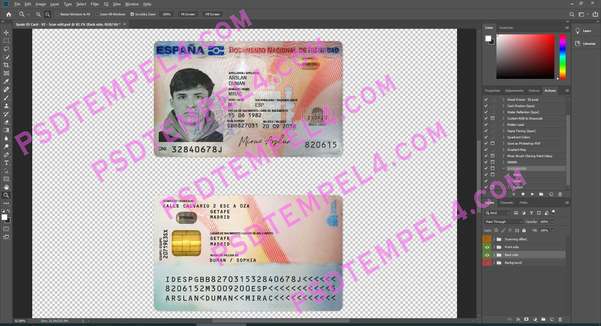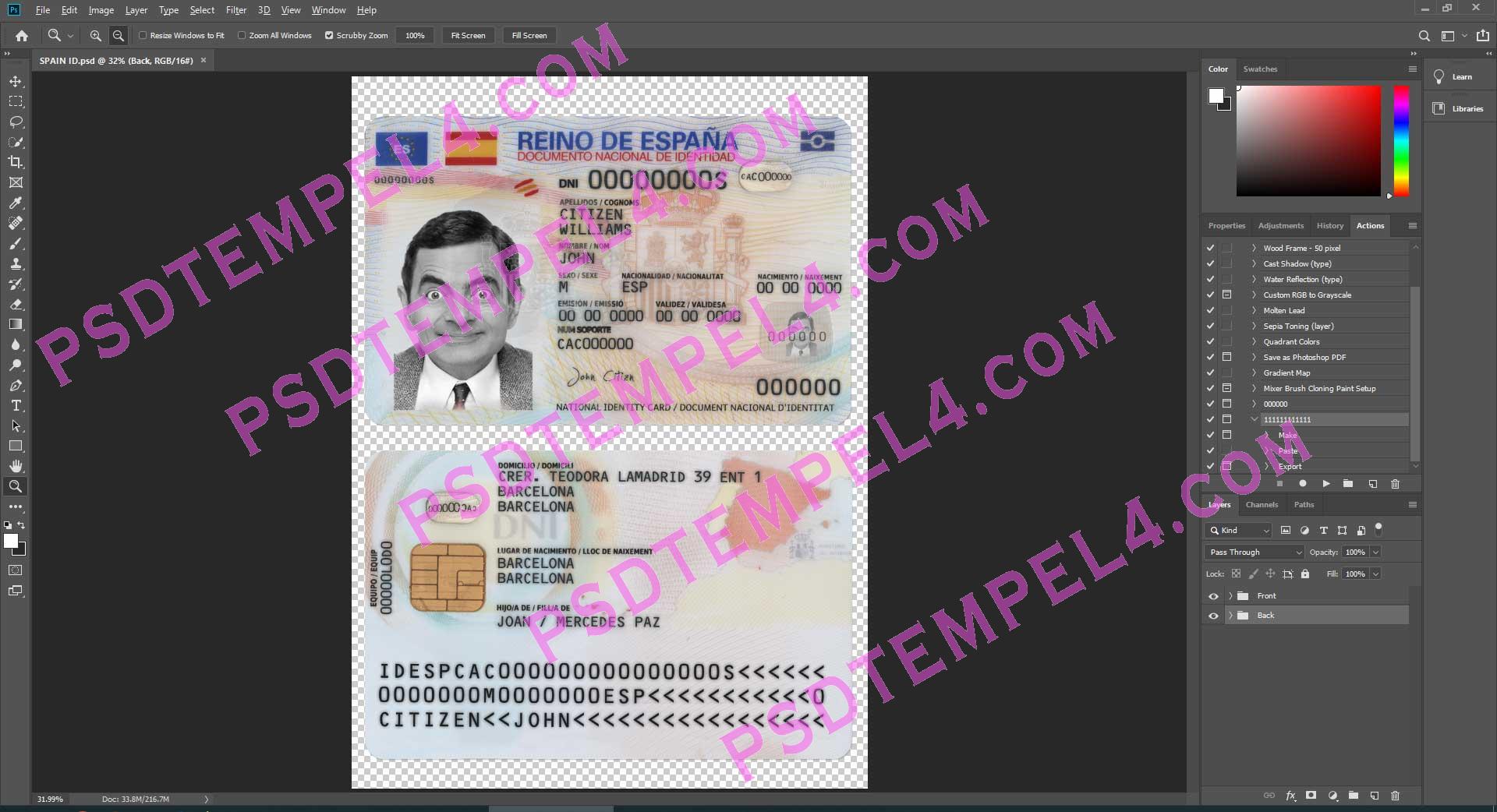Spain id card psd template fully editable high quality