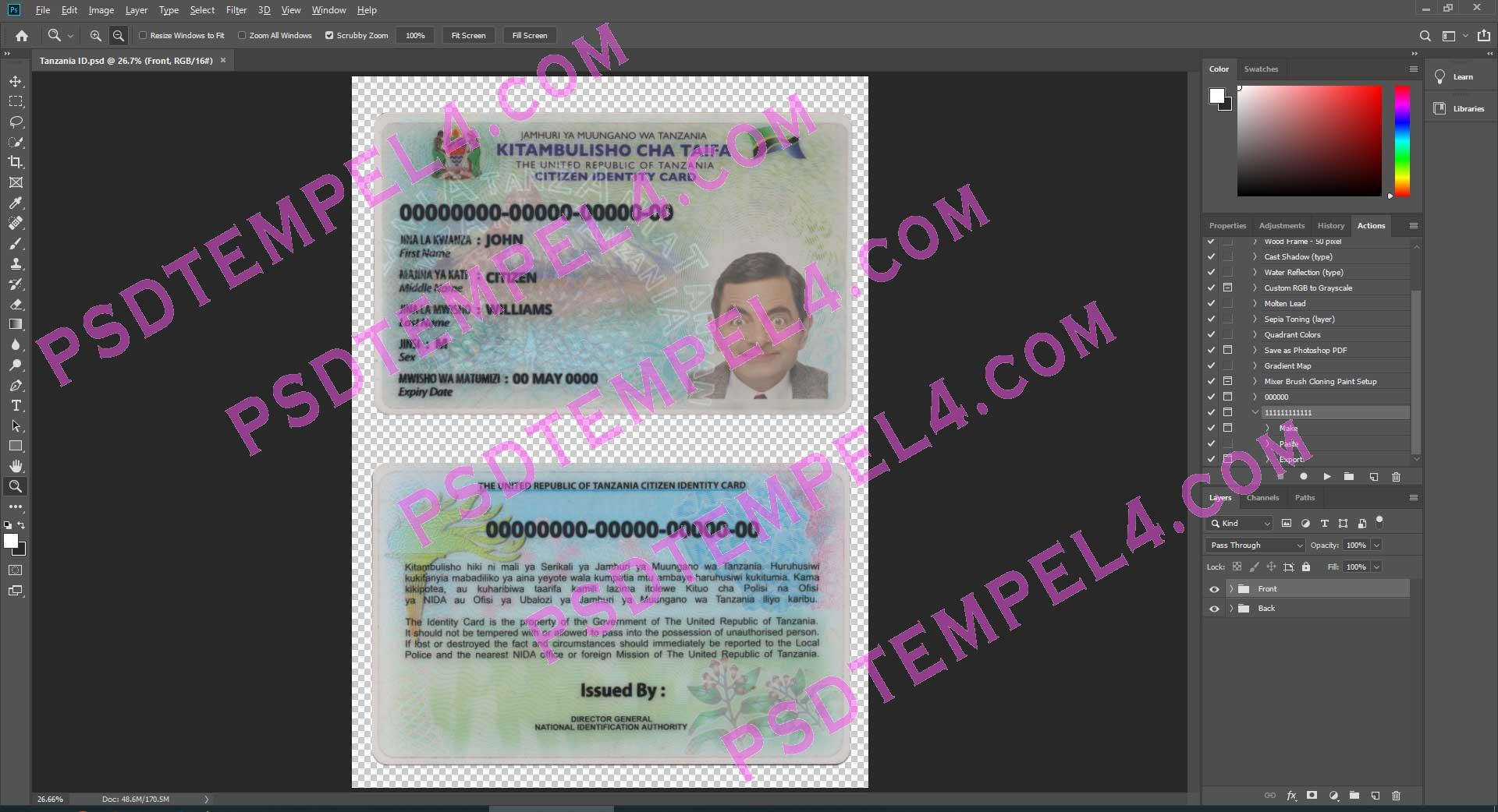Download Tanzania national id card PSD File Photoshop Template Fully Editable