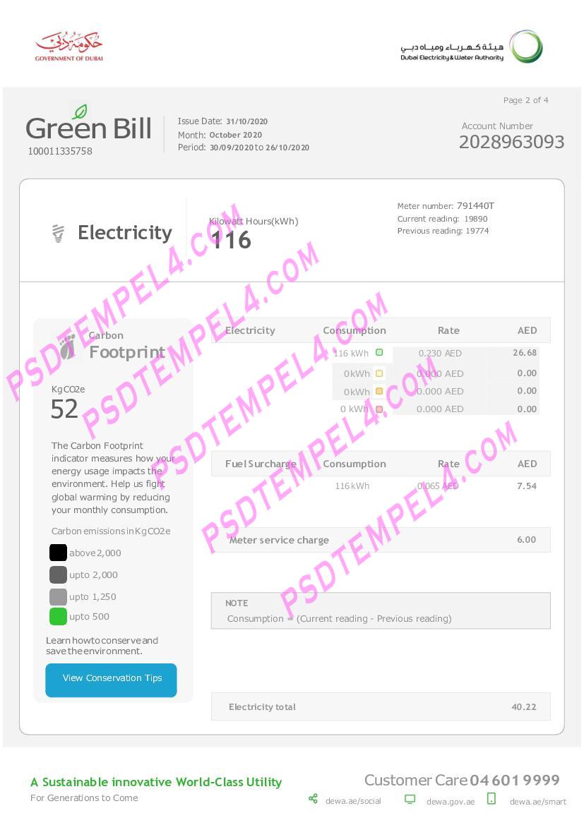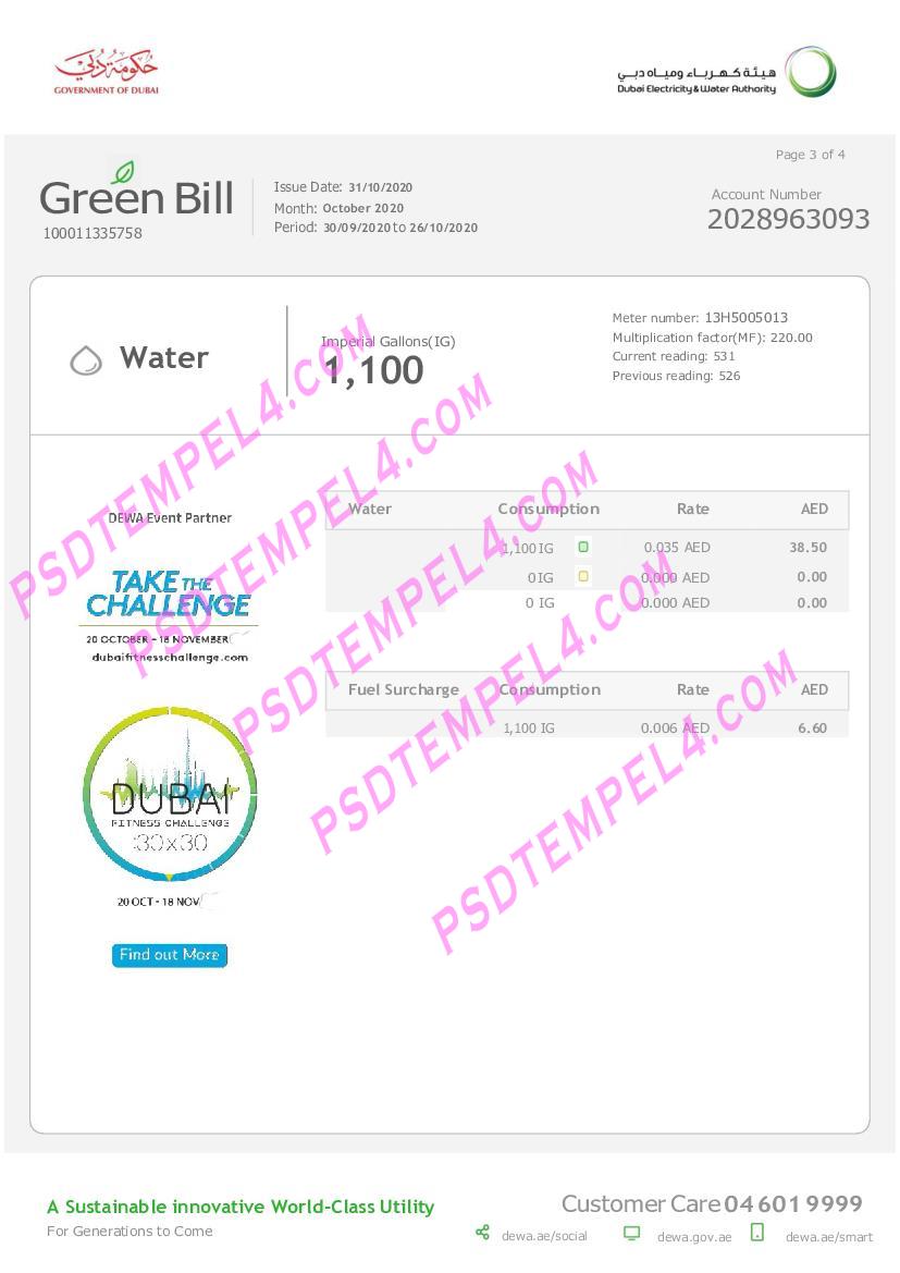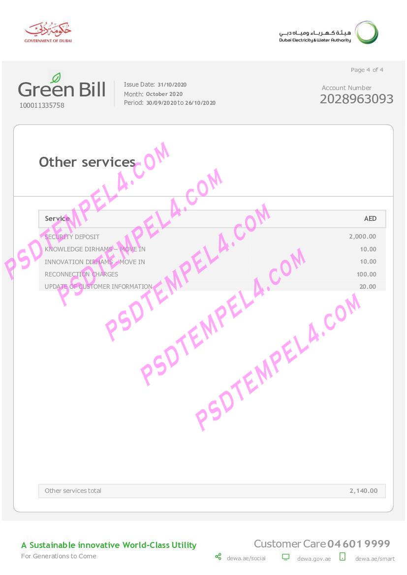 - UAE United Arab Emirates Dubai Electricity Water Authority Utility Bill Template Word Editable: This template allows you to open and edit the bill using Microsoft Word. It’s ideal for those who need a customizable format.