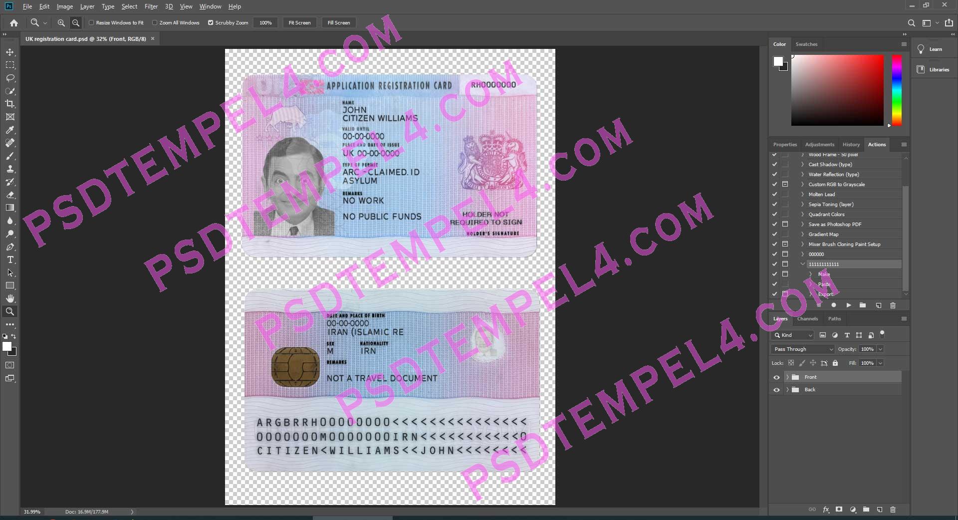 This is for to the registration card PSD File Photoshop Template Fully Editable of the UK United Kingdom. the UK United Kingdom national registration card PSD template has been made available to the public through the fake download shop in psd format and good price and high quality.