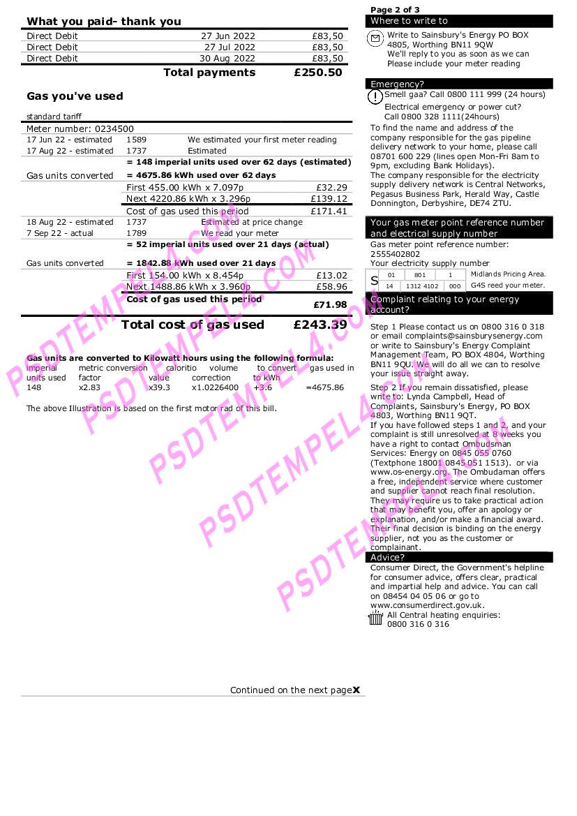 For the most up-to-date formats, you can download UK United Kingdom utility bill 2025 versions. These updated templates reflect the latest design and format used by UK United Kingdom Sainsbury’s Energy (British Gas) for the current year. Whether you need a new bill for proof of address or are managing administrative tasks, this updated version ensures you have the most accurate and current billing information.